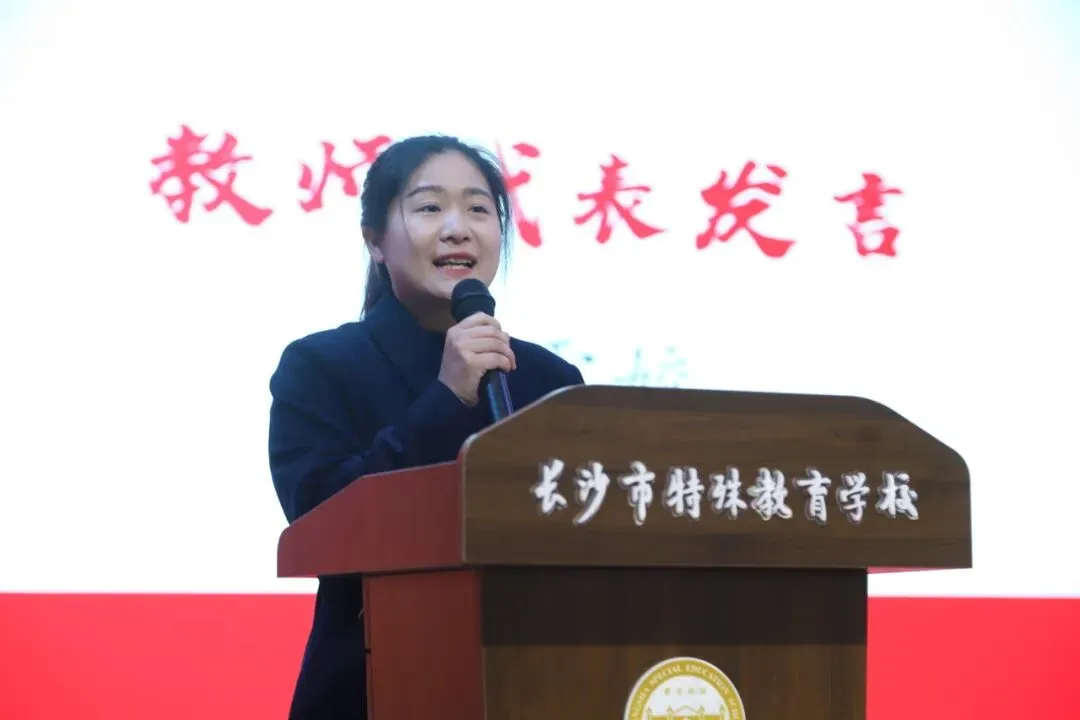 启智部教师代表朱雪姣分享了她在特教一线扎根九年的育人故事。从课堂教学到控辍保学,她用专业与温情诠释了特教人的责任与坚守,展现了特教教师的默默奉献与温暖情怀。