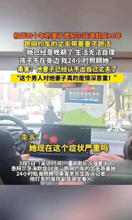 长沙网约车刷屏:丈夫带失智妻子跑车24小时贴身照顾,你忘了全世界,我守着你