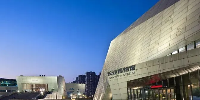 长沙市博物馆创立于1986年,原址位于清水塘22号(原中共湘区委员会旧址纪念馆)的基础上成立。这里的毛泽东、杨开慧同志故居,不仅是中共早期湖南党组织所在地和中共湘区委员会的活动基地,更是湖南省重点文物保护单位,为长沙博物馆奠定了深厚的红色文化基因。经过近30年的积淀与发展,为适应新时代的文化需求,长沙博物馆新馆于2015年在开福区新河三角洲,湘江与浏阳河的交汇处,落成并投入使用,新馆建筑高5层,象征两条湖湘文脉的汇聚,寓意历史与当下的交融。 建筑外观形似一扇敞开的大门,象征着博物馆开启了一扇通往文明、增长智慧之门。长沙博物馆的标识外形源自镇馆之宝——商代象纹大铜铙。它既代表了博物馆是保存历史记忆的殿堂,又酷似英文“Museum”的首字母“M”,体现了传统与现代、中国与世界的完美结合。