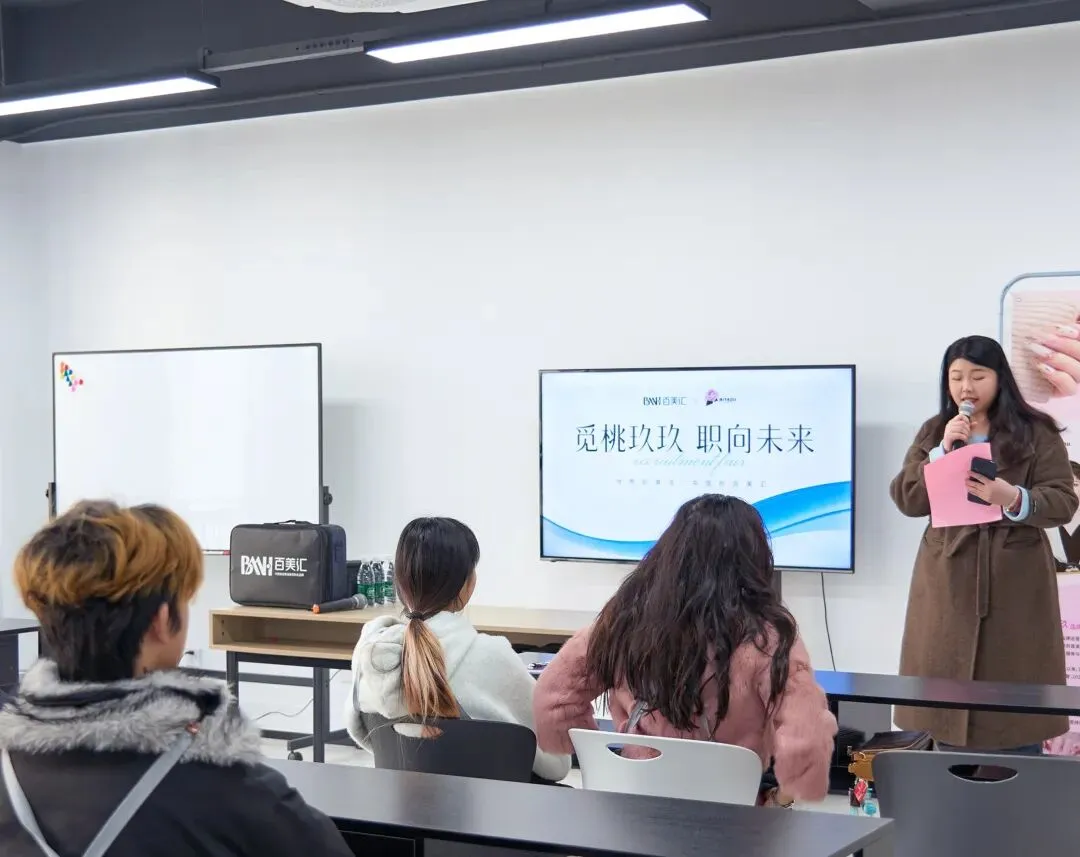3月7日10:00,觅桃玖玖美甲名企专场宣讲会在长沙百美汇校园内准时开场!