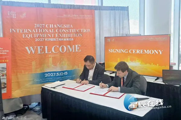 推介会现场还举行了集中签约仪式,长沙国际工程机械展览会组委会分别与国际智能建造学会(美国)、智利鸿展公司、印度NBM传媒集团、韩国起重机协会、意大利V22传媒集团等国际机构和媒体签订合作意向。合作内容涵盖全球专业观众组织、论坛活动推广、品牌传播及海外企业参展代理等多个方面,标志着CICEE 2027的国际合作网络进一步织密,全球影响力持续扩大。此次签约将为展会的国际化运营注入新动能,推动全球工程机械产业链的深度融合与协同发展。长沙工程机械行业协会与国际智能建造学会同步签订了战略合作协议。