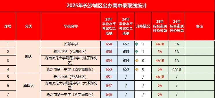 核心逻辑:市教育局将四大60%的招生计划,直接分配到长沙城区各初中,学生填报志愿后,只要中考成绩达到最低控制线(2025年为630分),就按校内名次择优录取——拼的不是全市排名,是校内排名!哪怕你全市排名不算突出,只要在本校排名靠前,就能靠指标生降分突围走进四大。