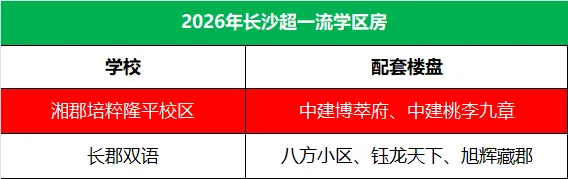 而在芙蓉区、雨花区,乃至长沙县,湘郡培粹隆平校区就是龙头,对应的超一梯队学区房只有中建博萃府、中建桃李九章这两个。