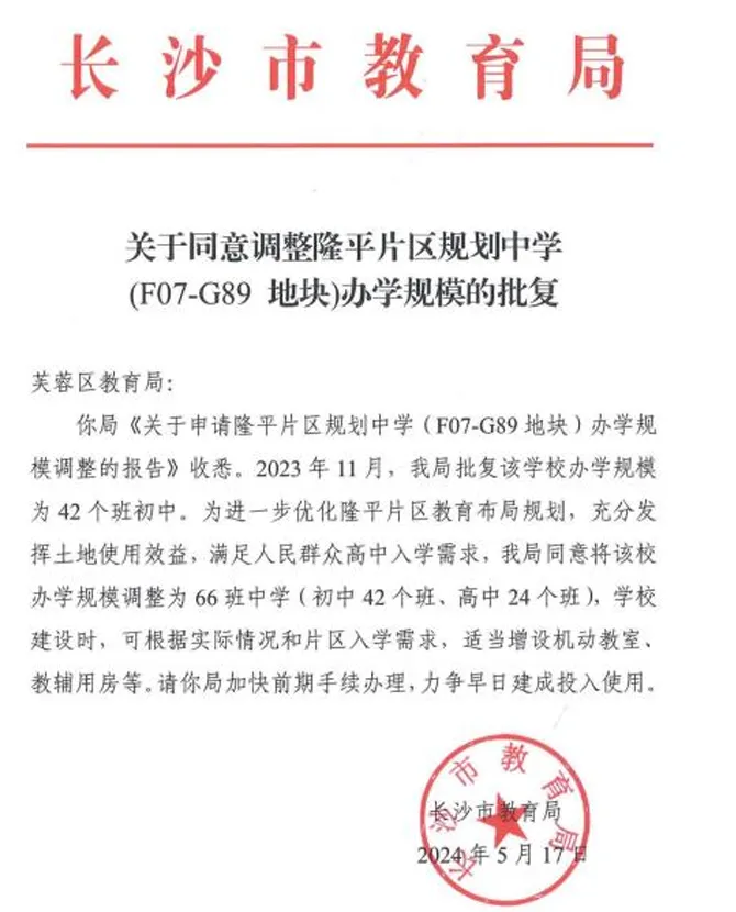 买中建博萃府、中建桃李九章,今年9月即可配套入读湘郡培粹隆平校区:这所与长郡双语同属超一梯队的初中。