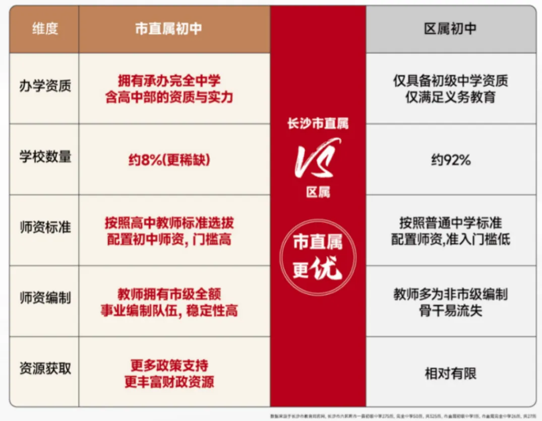 市直属校在办学资质、师资编制、经费保障、政策倾斜上,直接对接长沙市教育局,支持力度、发展空间、未来上限,都远超普通区属中学。