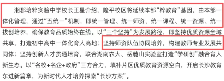 湘郡培粹王星校长对隆平校区高度重视、亲自掌舵,并明确表示: