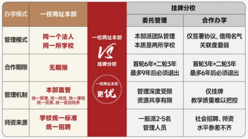 说白了,就是一所学校的两个校园,不是分校,而是实实在在的"本部的一部分",和本部是"一家人、一条心、一个标准"。