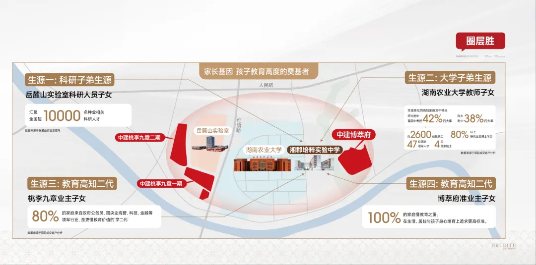湖南农业大学教职工子弟 + 岳麓山实验室科研人员子女 + 中建桃李九章 & 博萃府业主子女,高知家庭扎堆,学风天生出众。