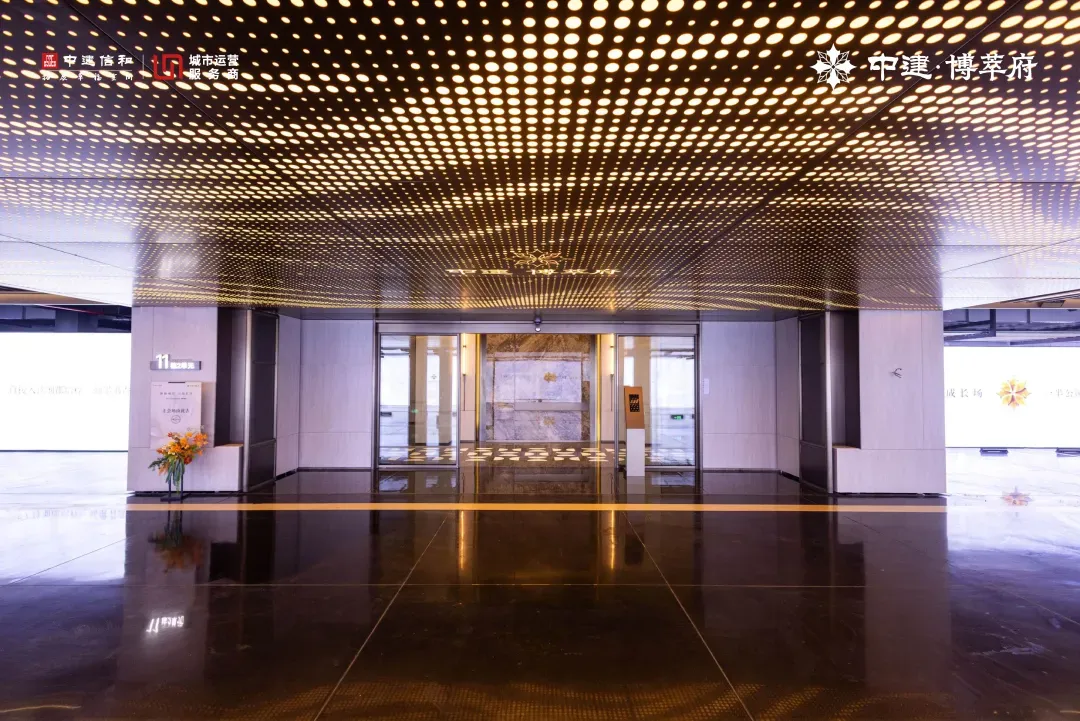 公区尺度开阔,高级感十足。约100米宽、9.9米高的酒店式归家大门将气场和仪式感直接拉到顶。