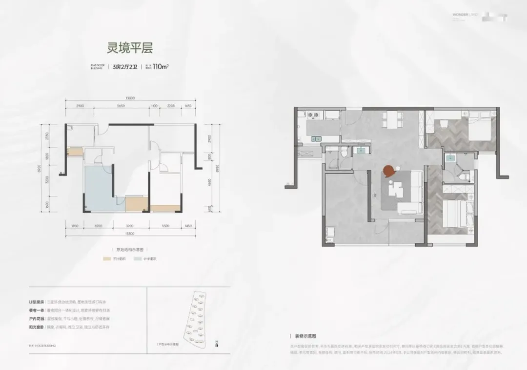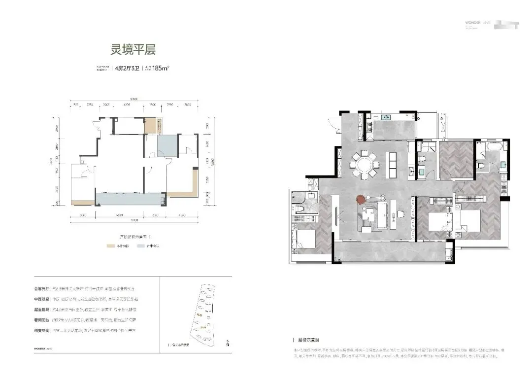 项目主推建面约100/120/165㎡户型,全系负公摊设计,得房率最高约115%(含电梯光厅),总价约130万起,即可上车。