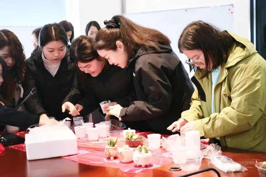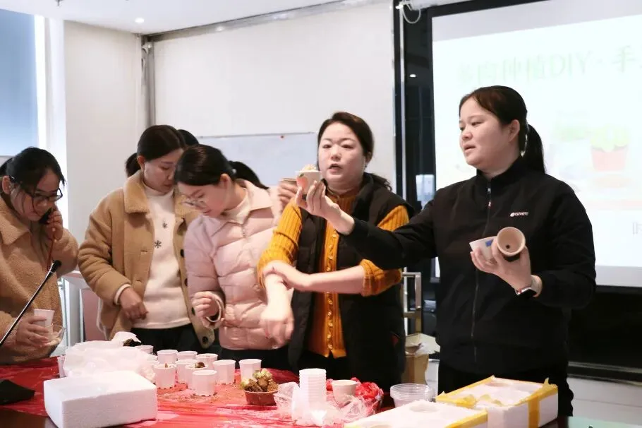 活动在欢声笑语中拉开帷幕。作为本次系列活动的"重头戏",花式"多肉DIY"与手工灯笼制作吸引了众多女职工热情参与。
