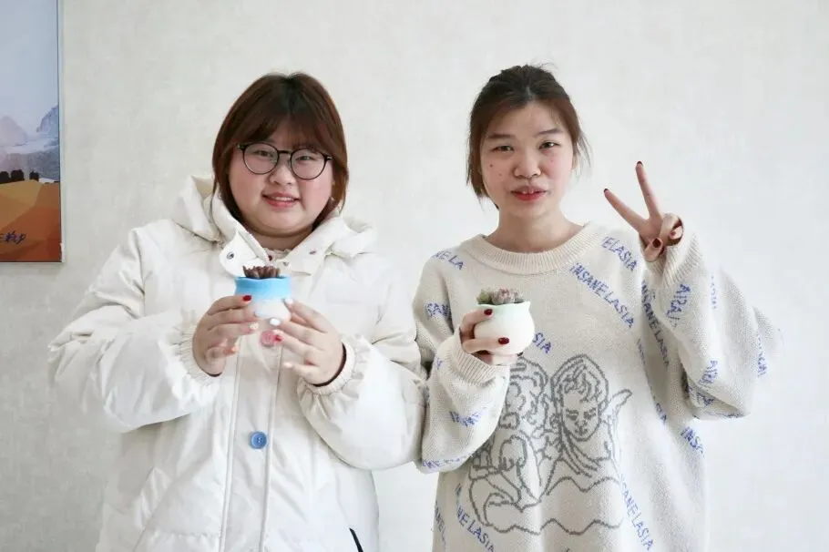 不多时,一盆盆错落有致、生机盎然的多肉微景观跃然眼前。看着亲手打造的"迷你花园",大家笑容如花,纷纷捧起作品合影留念,定格美好瞬间。