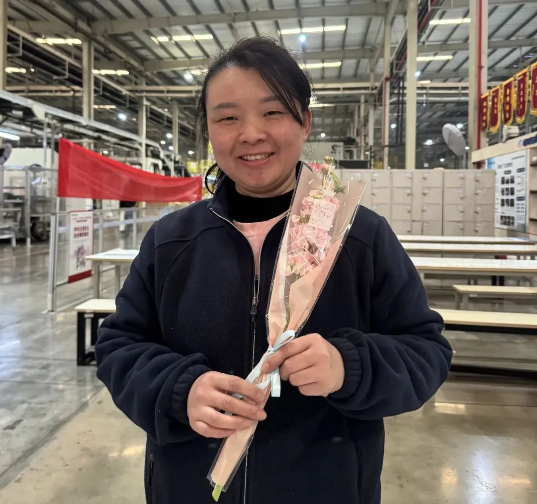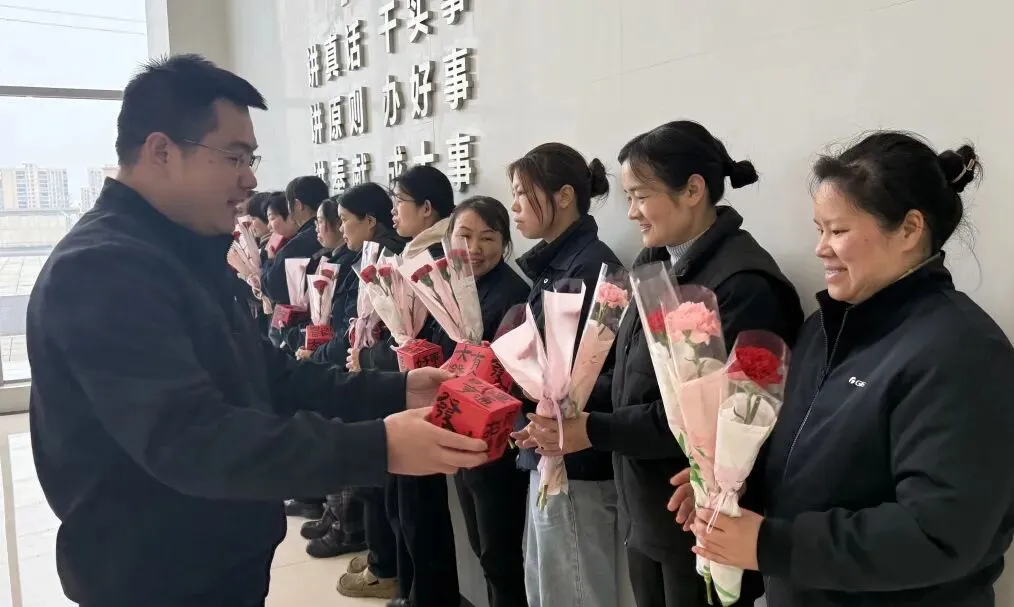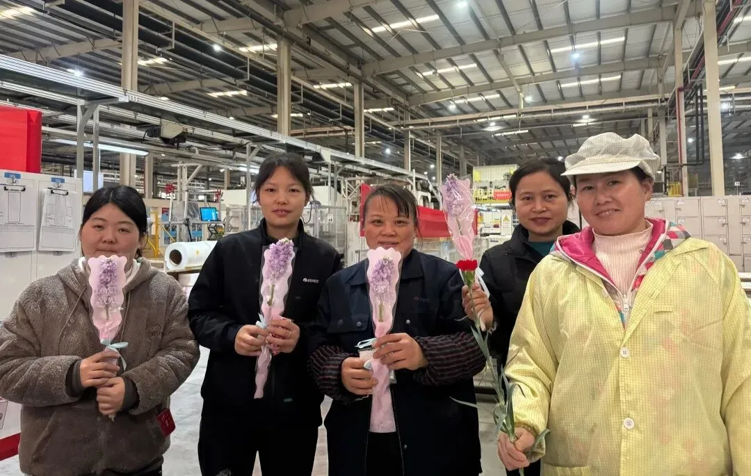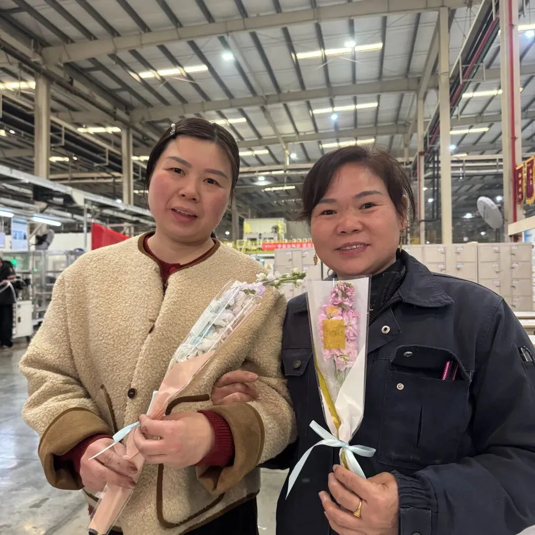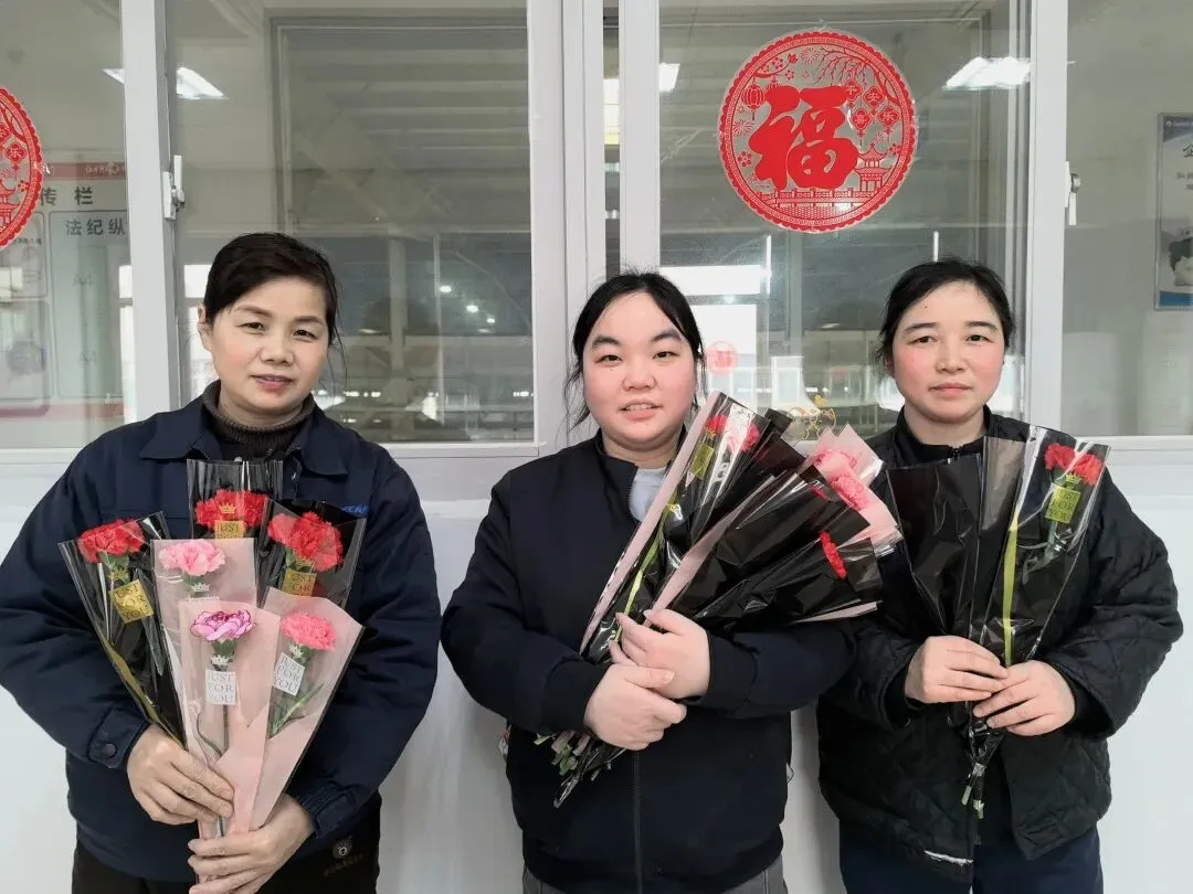这份专属的节日惊喜,不仅为忙碌的车间增添了一抹柔美的色彩,更让“她力量”在机器轰鸣中收获了属于她们的荣光与尊重。
