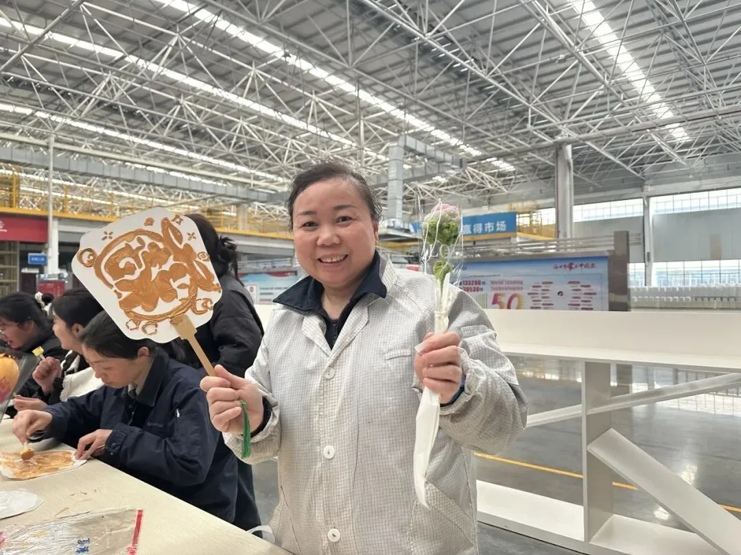 控制器分厂则用一场别出心裁的互动,让关怀更加深入人心。分厂领导深入各岗位,亲手为在岗女职工送上芬芳鲜花与诚挚祝福,感谢她们在日常工作中的辛勤付出。随后,一场充满奇思妙想的“魔法镜子”创意DIY活动欢乐开启。女职工们化身艺术设计师,在镜面上尽情挥洒灵感,于动手创作中放松紧绷的神经,在欢声笑语里展现别样的风采。