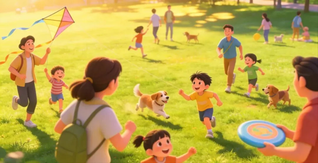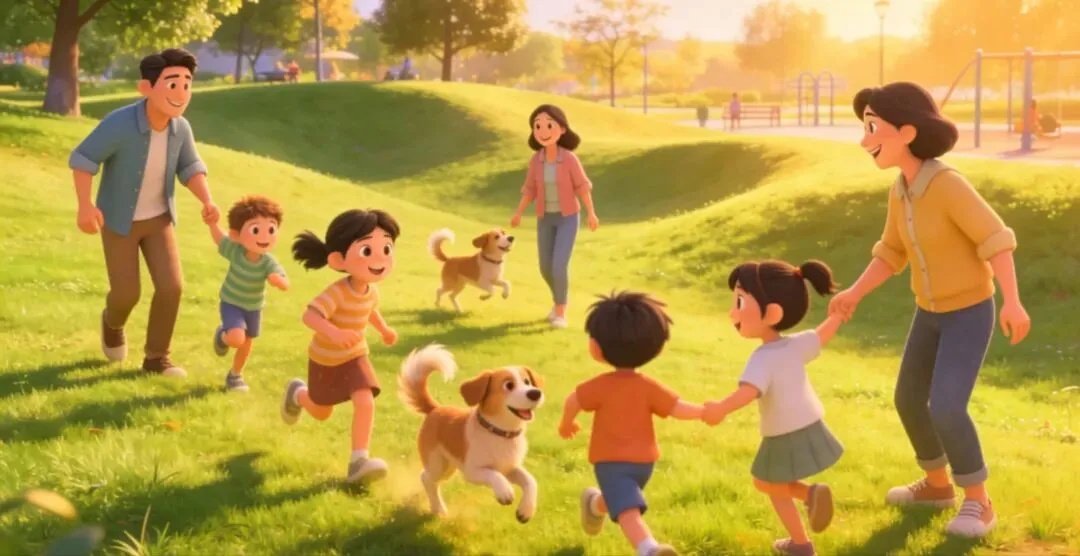 旺财一进公园就兴奋得不行,它在草地上东嗅嗅西跑跑,尾巴摇得像拨浪鼓。孩子们也受到了感染,叽叽喳喳地开始商量玩什么游戏。“123,木头人!”孩子们清脆的喊声打破了我们几个大人之间最初的沉默。一开始,大家都还有些放不开,只是微笑着看着孩子们。旺财在孩子们中间窜来窜去,时不时还去扒拉一下那些“木头人”,逗得孩子们咯咯直笑。