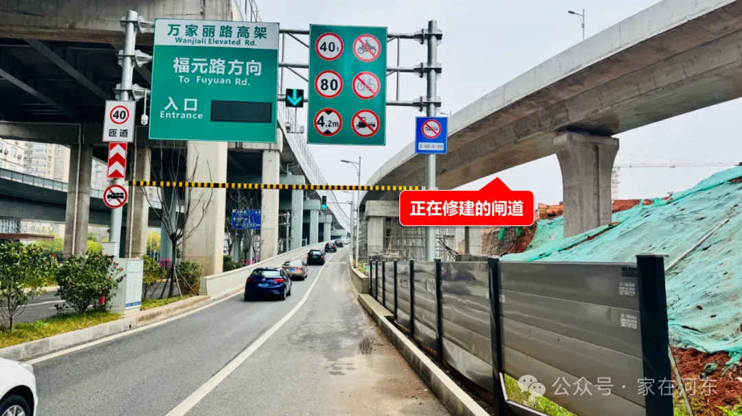 滚滚车流只能先回到万家丽北路地面,再从加油站旁边上高架桥,高峰期堵车现象时有发生。