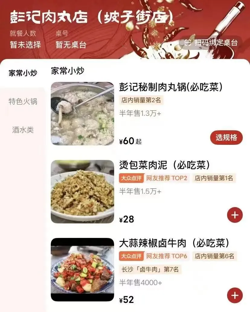 手机点了秘制肉丸锅(中份)、爆炒牛蛙、烫包菜肉泥;