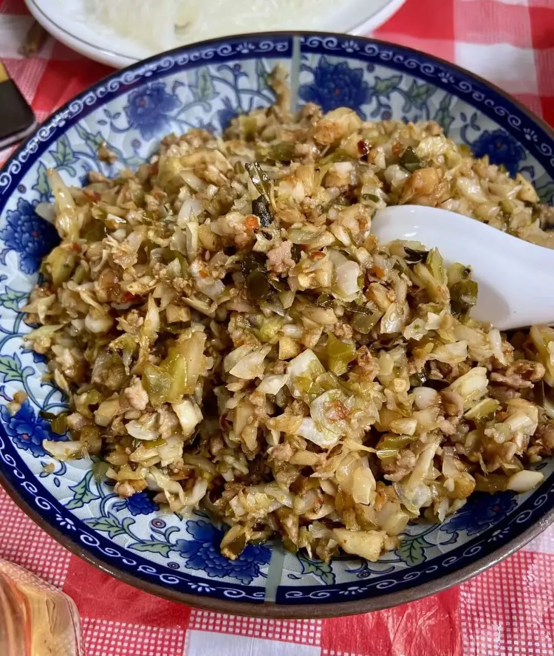烫包菜肉泥堪称米饭杀手,整体是咸酸口的,猪油的香气仿佛催促着你多扒两口饭。