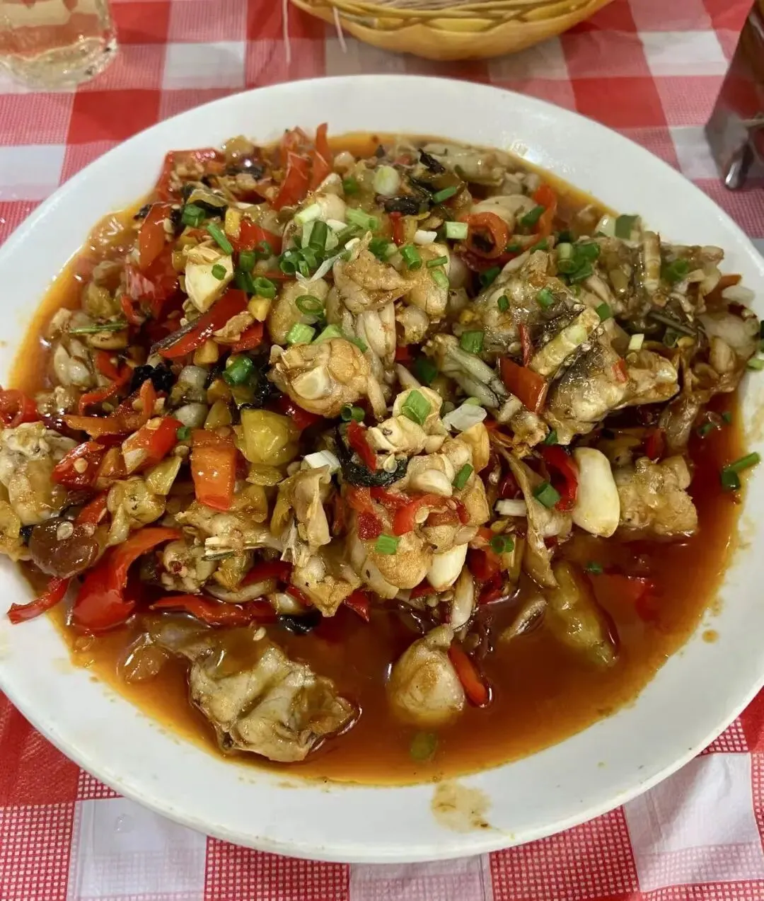 牛蛙是那种碎炒,剁得细细的,炸后再炒,有干香,再加上汤汁焖后,非常入味。整体偏辣口。