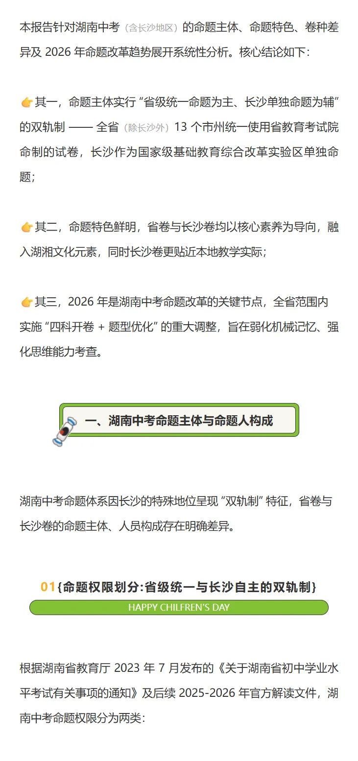 湖南中考(含长沙地区)命题情况及 2026 年命题改革趋势系统分析