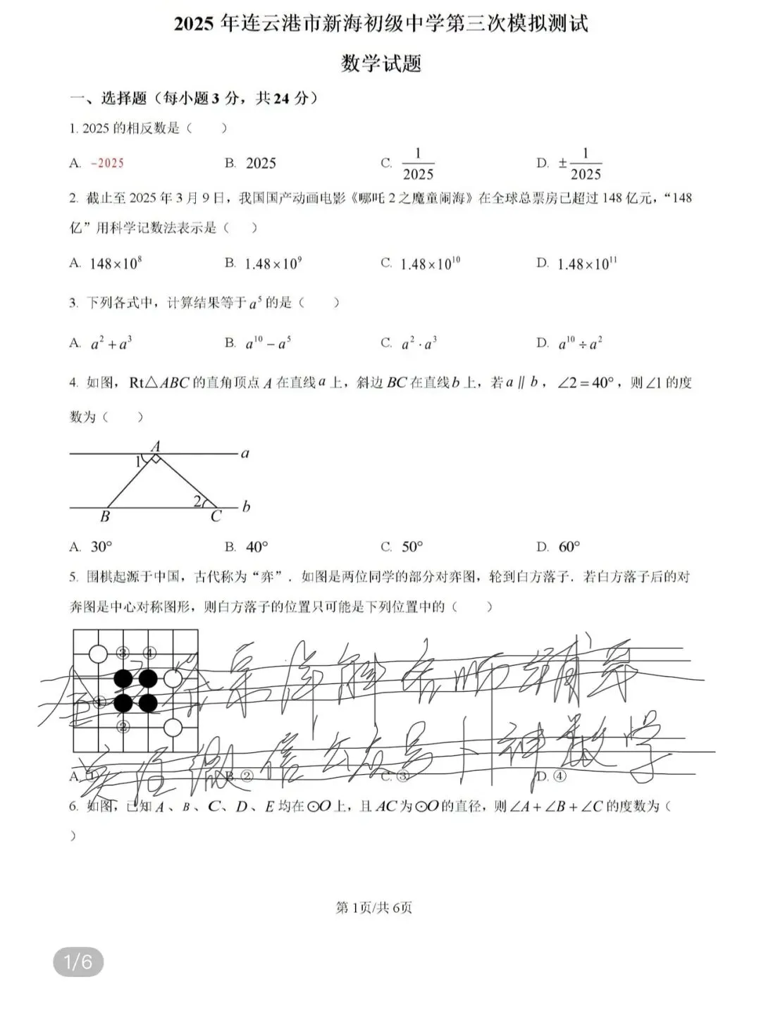 2025年江苏省连云港市新海初级中学九年级数学第三次模拟试题