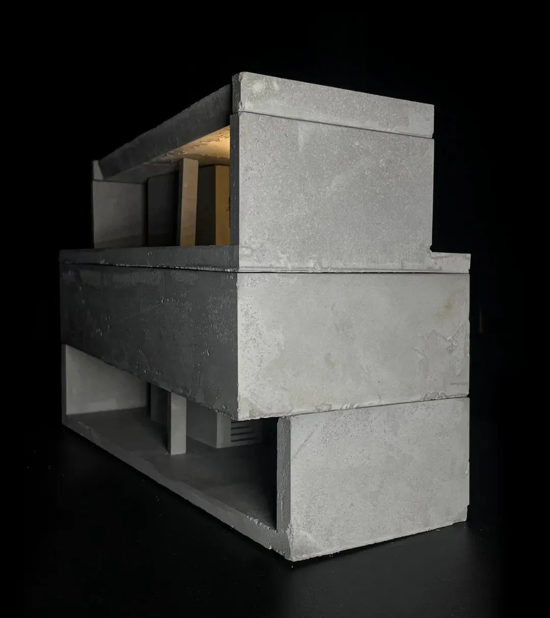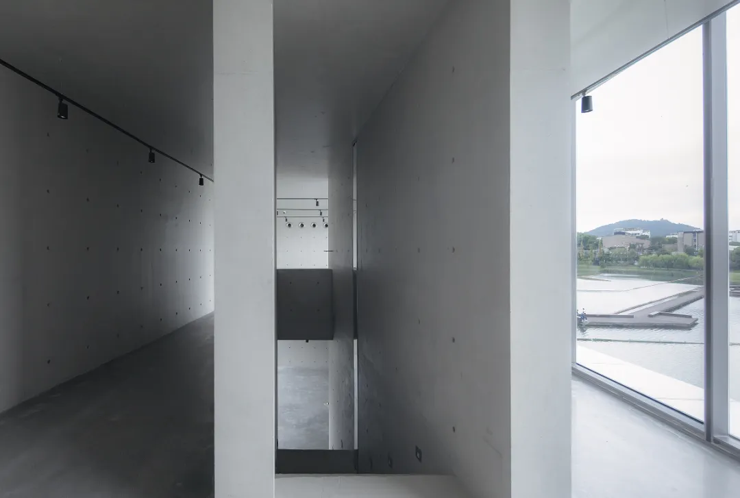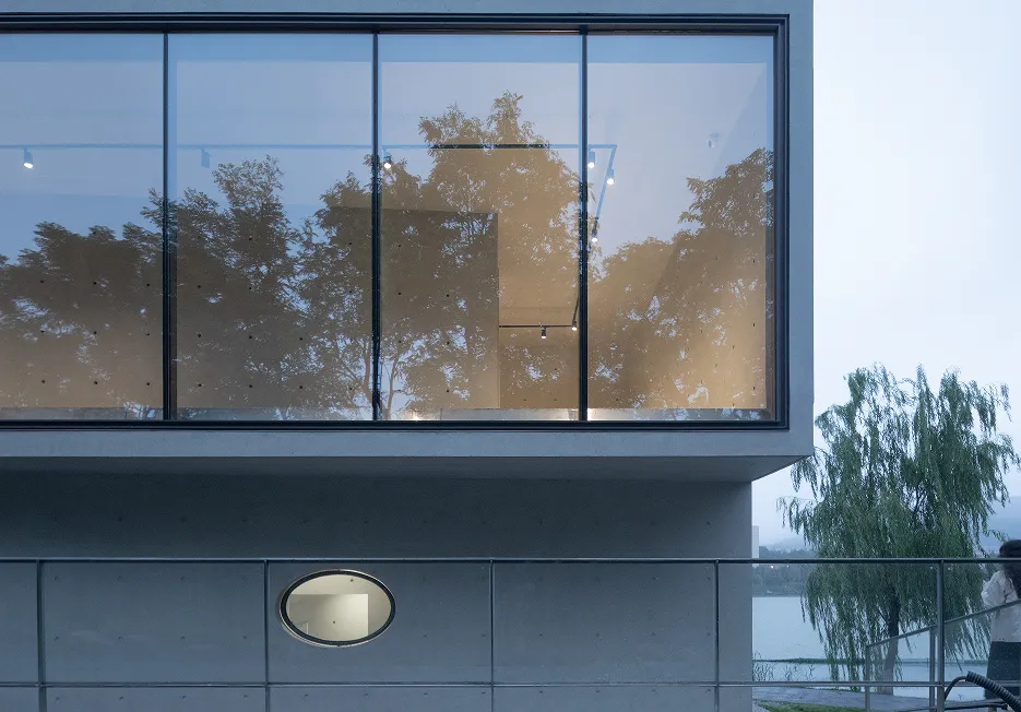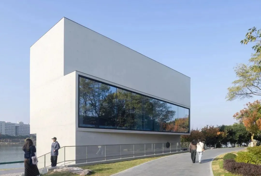 凭借严谨的逻辑控制,建筑在自然与人工环境的叠加中,并未选择模仿自然,而是以理性之光与自然韧性交相辉映。镜像旨在成为自然中的一面镜子,映射周边水、树、山三重景观维度。建筑与其水中倒影亦构成镜像关系,隐喻人工与自然环境的叠合与互映。