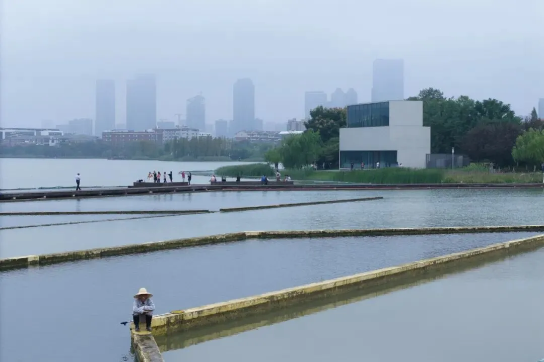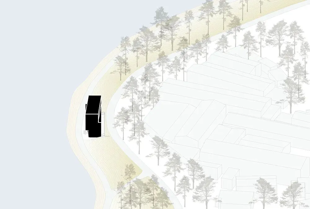 因此,设计通过设置一个具有标识性的建筑,反向整合原本零散、可识别性弱的岸线结构,起到聚焦与凝练的作用,进而增强环湖步道的整体归属感。