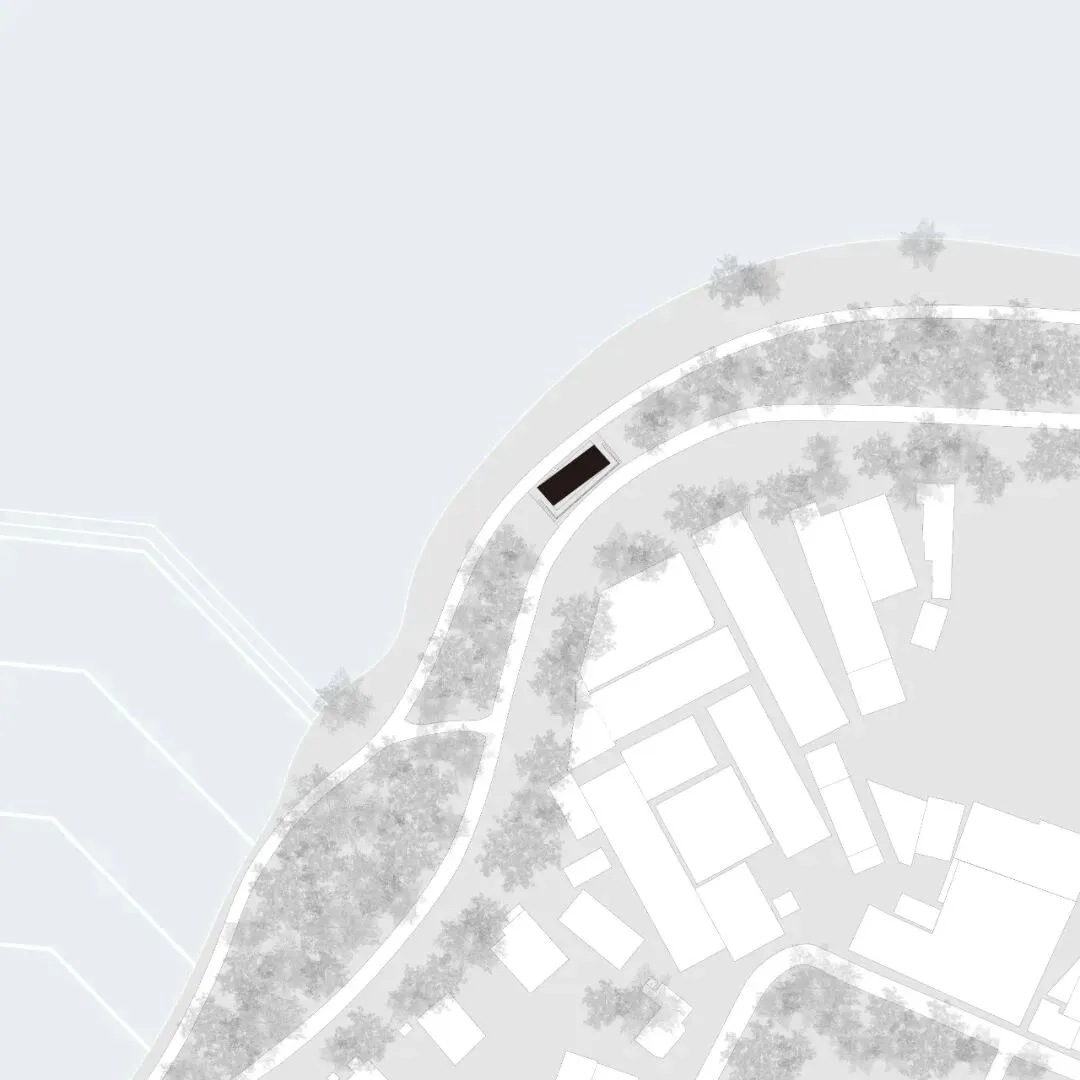 作为湖边小体量建筑,设计未采用拟态自然的手法,而是以理性、人工化的几何形态与自然环境形成反差的对比。这种具有明确几何导控的建筑体量,介入自然驳岸乃至步道系统中,展现出理性建构与自然法则的殊途同归。