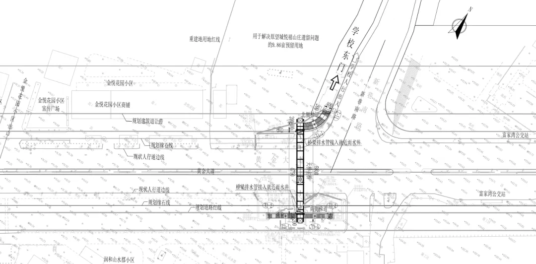 目前天桥正好处于长沙市一中金山桥学校东门的南边不远处,这意味着,润和山水郡、悦禧山庄等黄金大道以南小区的孩子们,未来上学将不再需要在滚滚车流中横穿马路,而是可以通过这座天桥安全、便捷地抵达学校。