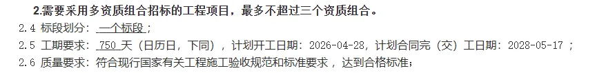 不过很夸张的是,该项目施工工期要求竟然长达750个日历天,计划开工时间为下个月28日,约定完工时间竟然到了2028年。