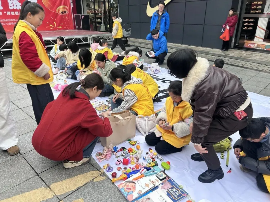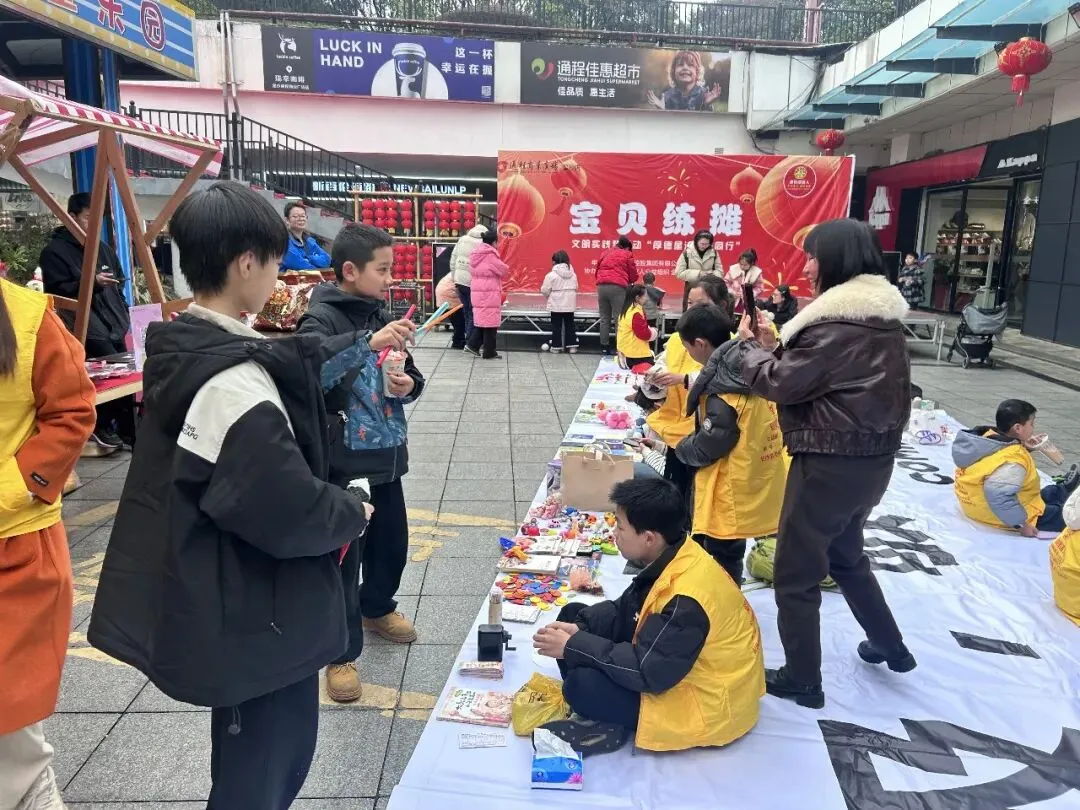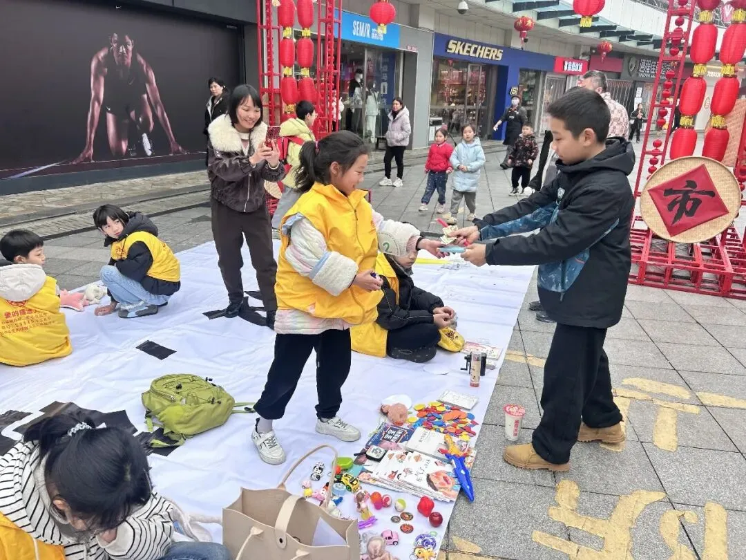 下午两点半,活动现场已然成为一个热闹非凡的“爱心集市”。一个个精心布置的“摊位”上,摆满了孩子们带来的各式各样的物品:有陪伴自己成长的精美图书、有闲置但仍完好的益智玩具、有亲手绘制的书画作品,还有与家长共同制作的手工艺品。为了吸引“顾客”,小摊主们可谓各显神通,有的绘制了创意十足的宣传海报,有的高声吆喝推销,还有的现场演示物品玩法,稚嫩而认真的神情,汇成了现场一道道动人的风景。
