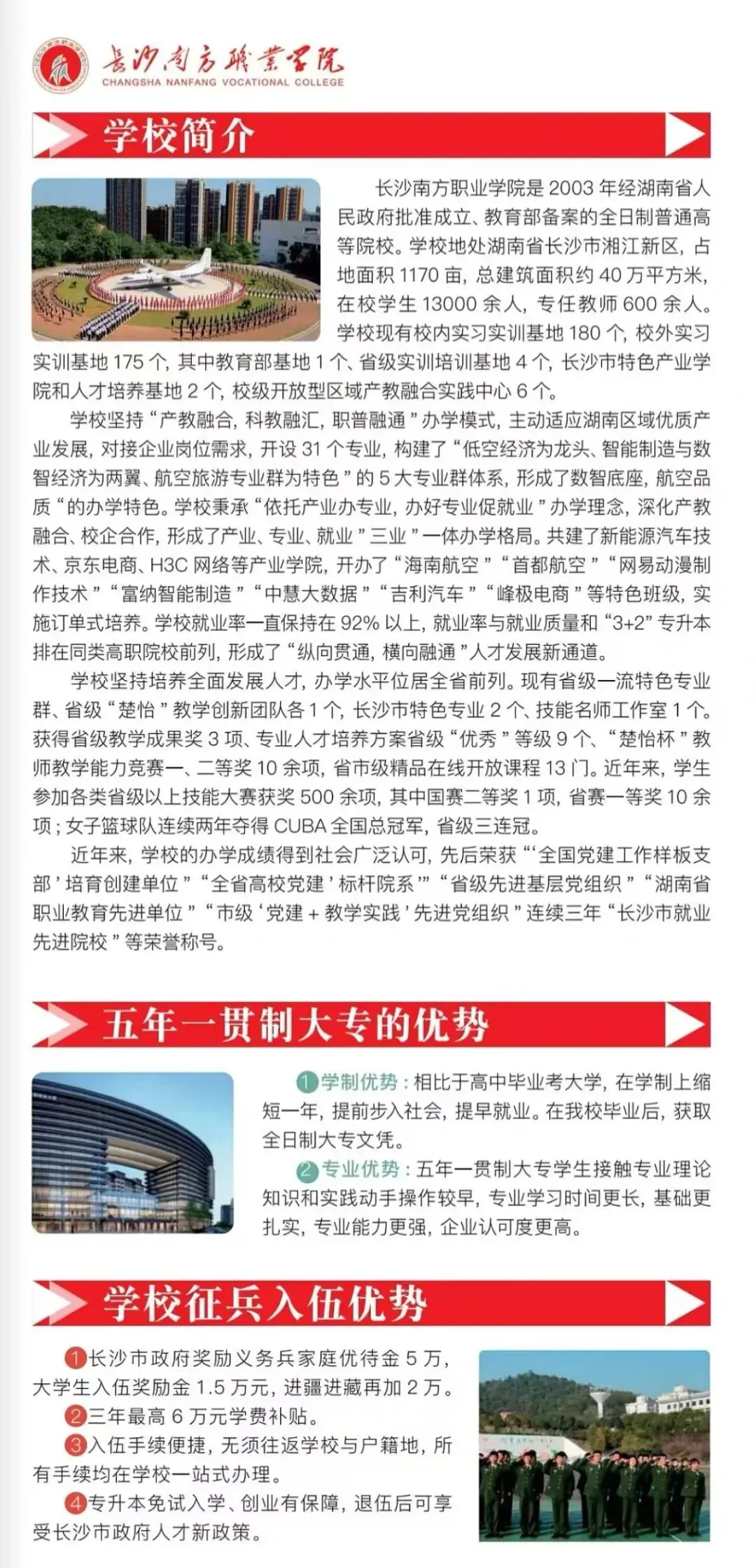 >长沙南方职业技术学院2026年五年一贯制招生指南
