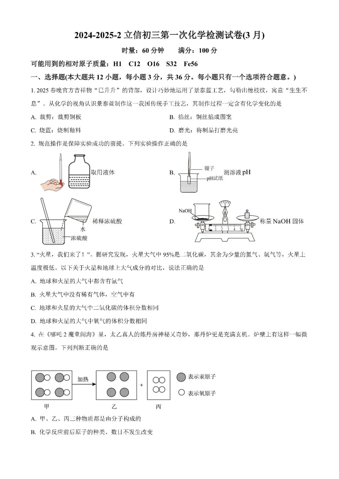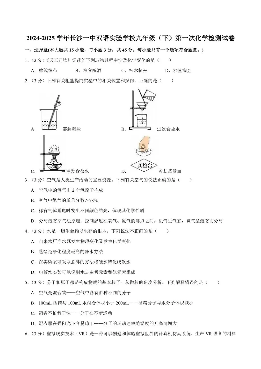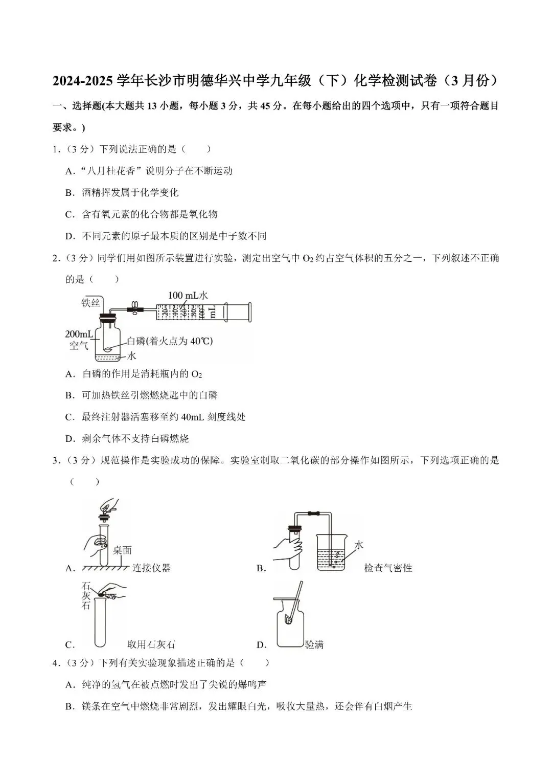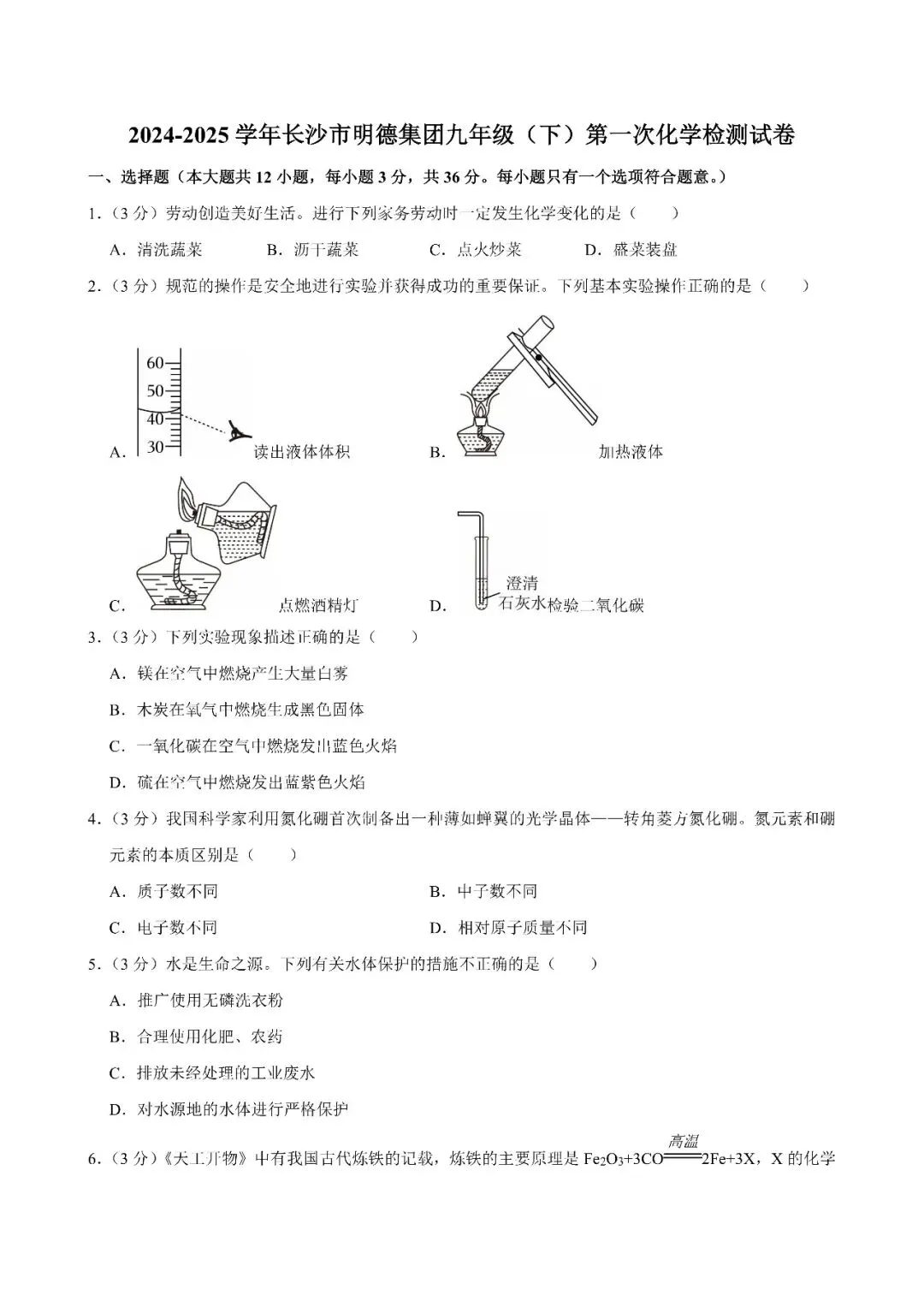 【真题汇总】——2025年长沙九年级下册入学检测化学试卷+参考答案(免费领取)