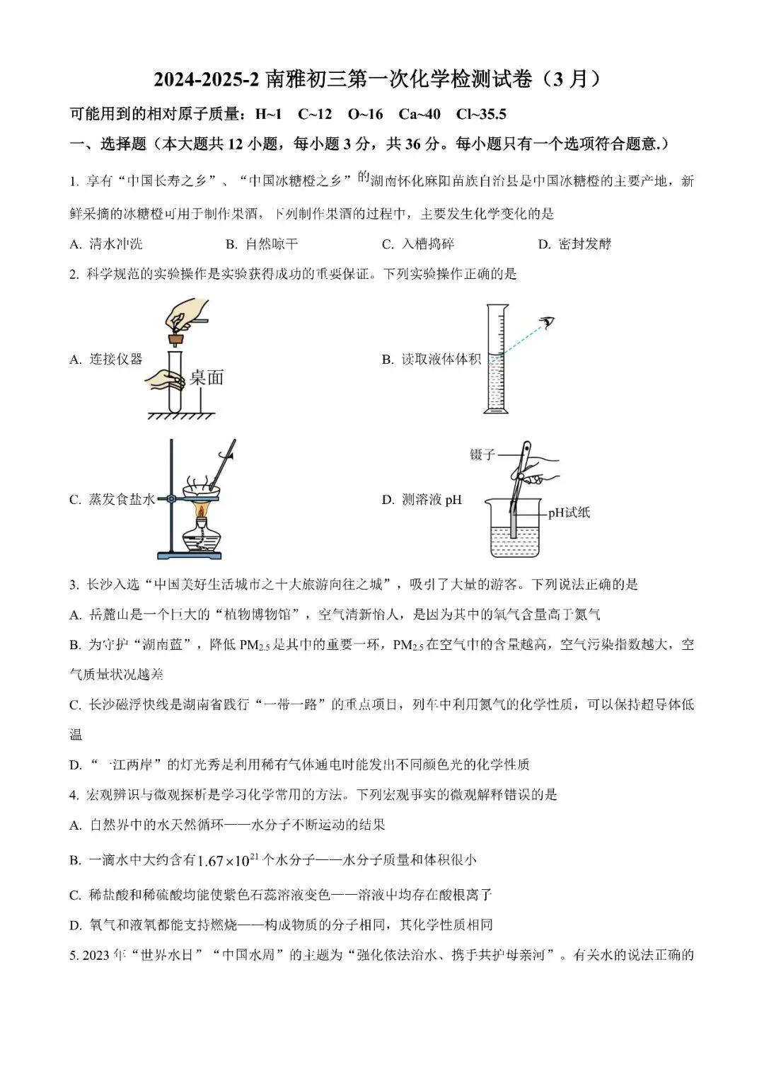 【真题汇总】——2024年长沙九年级下册第一次检测化学试卷+参考答案(免费领取)