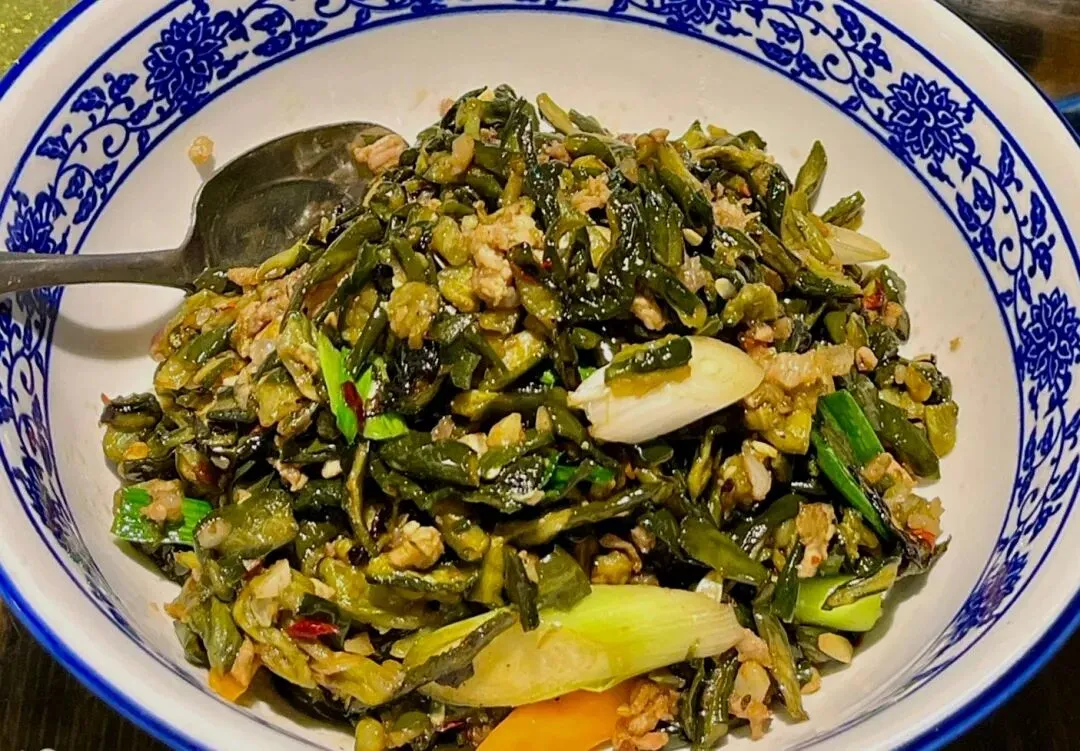 蒸排骨,好吃,放了豆豉和干辣椒,有一定豆豉辣椒的香,但是并没有太重;而且排骨本身的肉香占主导。排骨肉嫩,软烂脱骨,又香又入味,汤汁拌饭也很好吃。青辣椒炒油渣,油渣又香又脆又不干不糊,火候掌握得恰到好处,炒的味道也好,连青辣椒都入味,真是太下饭了。干煸四季豆,外皮煸得焦香,吃起来里面并不干,也比较入味,干辣椒段、肉泥和梅干菜的加入巧妙的中和掉了四季豆本身的青草气味,挺不错的。笋丝鱿鱼,水笋子很嫩,鱿鱼不是那种水发鱿鱼,切得跟水笋子差不多的形状,乍一看还有点分不出是笋子还是鱿鱼。这个菜的口感也没问题,只是个人不喜欢胡椒味太重,所以相较于其他菜,这个菜对我的吸引力不大。黄瓜皮炒肉泥,也是一道口感和味道都很满意的菜,黄瓜皮脆爽有嚼头,舀一勺在米饭上,大蒜叶、黄瓜皮、肉泥和米饭一起吃,味蕾很满足,哈哈。他家的口味菜虽然下饭,但是外观也都还在线,干净清澈,不是那种只重视口味却忽略看相的。这里就是地方不大,环境很一般,但个人认为主要是菜合口味。