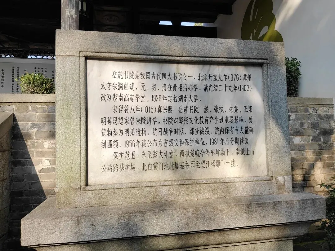 在岳麓山脚下坐落着中国历史上赫赫闻名的四大书院之一——岳麓书院。 湖南大学下属的二级学院,同时对公众开放,兼具教学研究与旅游参观双重功能。 书院内保存有大量古代建筑和碑匾。其门联“惟楚有材,于斯为盛”彰显了这里千年来的人才辈出。 岳麓书院是青年毛泽东和蔡和森、罗学瓒、张昆弟、萧三等同学经常到访之所。1917-1919年间,毛泽东曾多次寓居岳麓书院,一边学习劳动,一边从事革命活动,对“实事求是”校训有了更深的思考。 2020年9月17日,习近平总书记莅临湖南大学岳麓书院考察调研。总书记指出,毛主席当年就是在这里熏陶出来的,实事求是就来源于这里,岳麓书院是党的实事求是思想路线的策源地。