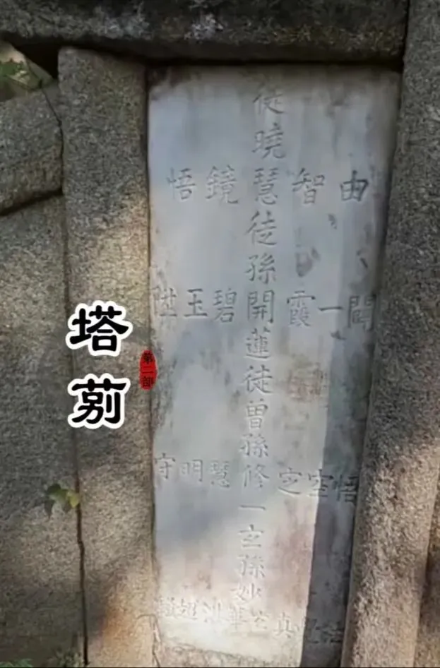 此普同塔规制严谨,《南泉和尚塔铭》载“塔内宽八尺,长壹丈六尺,上穴係清老和尚正位,馀係骸罎栏杆之前两层门石”,并立规“后有骸罎入塔者,须凭众等,毋得擅开”,由徒曾孙仁心、仁慈监修,塔莂更详列法嗣世系:徒辈晓由、晓智、晓慧、晓镜、晓悟,徒孙辈闢莲、一莲、霞莲、开莲、碧莲、玉莲、升莲,徒曾孙辈悟一、空一、定一、修一、慧一、明一、守一,玄孙辈妙法、妙觉、妙华、妙真、妙玄、妙华、妙湛、妙超、妙登,法嗣繁茂,足见其法脉之盛。而民间所传“南泉和尚避仇入川未归”“葬于天井山香炉坡为骨灰、衣冠冢”“植基塔为南泉和尚塔”等说,均无史料佐证,与《新续高僧传》、《南泉和尚塔铭》记载相悖,可证其伪。“植基塔”是惜字塔,上镌“光绪丁酉岁,李继述堂修”,即建于光绪廿三年(1897)。据同治《长沙县学宫志》捐款名录,李继述堂为河西都人,当是今植基村一带人。