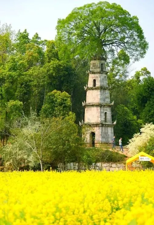 望城区茶亭镇的油菜花,真的是大片大片的,差不多有近万亩,是长沙周边看油菜花的热门地方。花海旁边有青山,还有一座清代的惜字塔,塔顶居然还长着树,特别有特色。春天的时候,偶尔还有花田音乐会、汉服巡游,3 月中下旬可能有民俗表演,热闹得很。