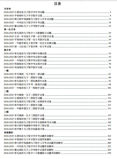 >2025届长沙名校初三下册数学模拟题共计30套