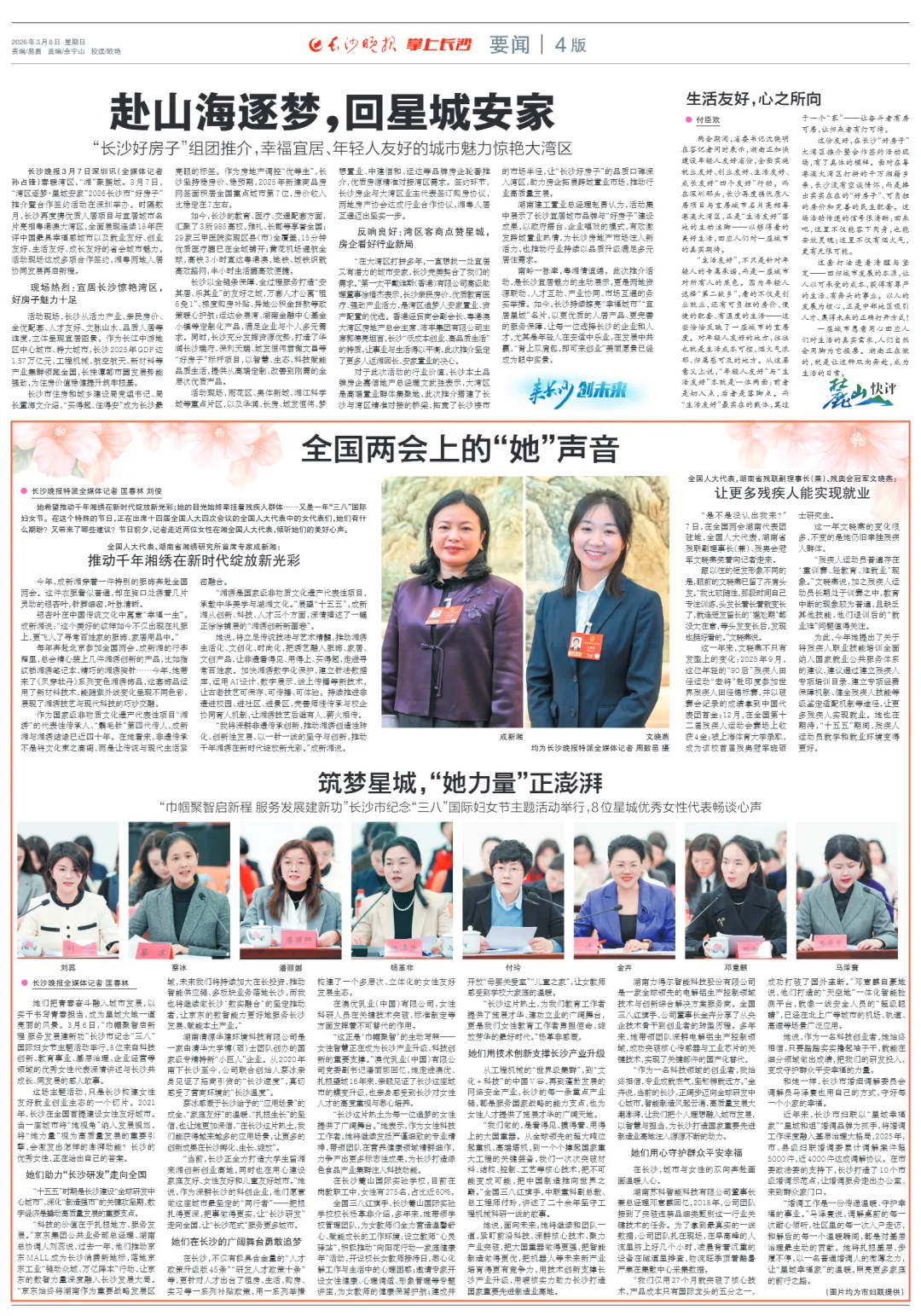 她们把青春奋斗融入城市发展,以实干书写青春担当,成为星城大地一道亮丽的风景。3月6日,“巾帼聚智启新程 服务发展建新功”长沙市纪念“三八”国际妇女节主题活动举行,8位来自科技创新、教育事业、基层治理、企业经营等领域的优秀女性代表深情讲述与长沙共成长、同发展的感人故事。