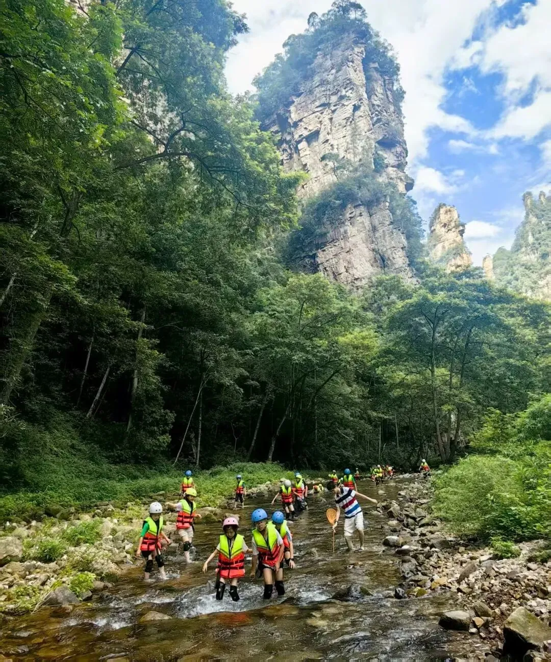 走进张家界大鲵自然保护区,走进金鞭溪,溯溪寻源,一起认识来自远古时期的朋友。认识森林动物猕猴 ,提升自然观察能力。地质遗迹,认识泥盆纪地层,感受奇特的石英砂岩峰林;
