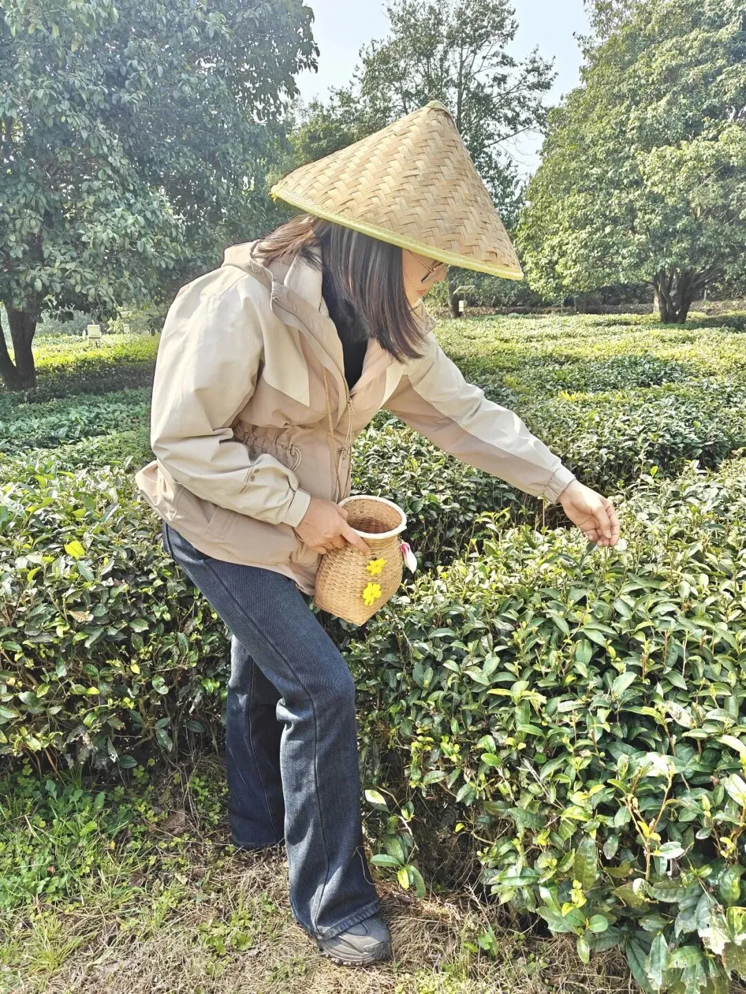 轻提茶篓,漫步层层茶园,