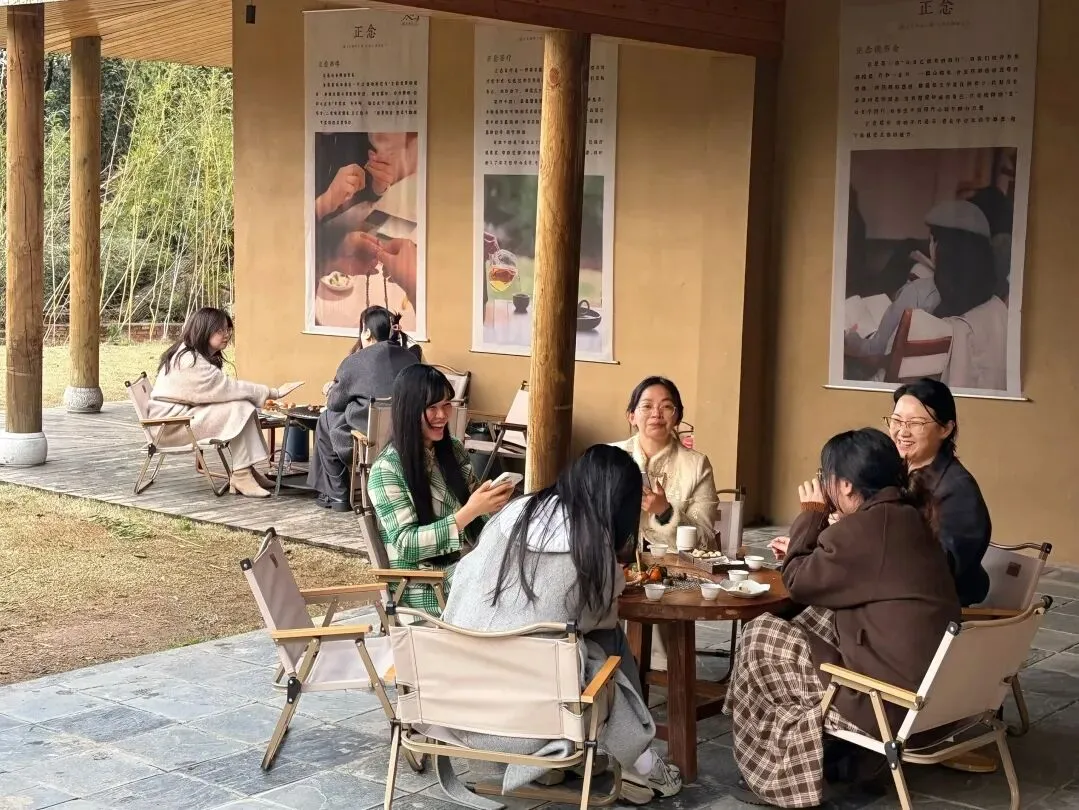 随后,活动进入“围炉煮茶”交流环节。现场红茶、白茶、果茶香气四溢,辅以烤糍粑、红枣、花生等精致茶点。
