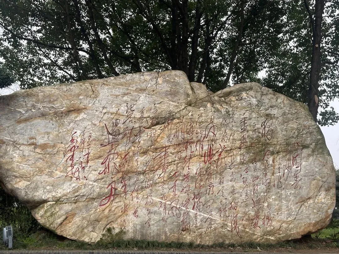 这是《沁园春·长沙》是毛主席于1925年创作的一首豪迈词作,使橘子洲声名远扬。 沁园春·长沙