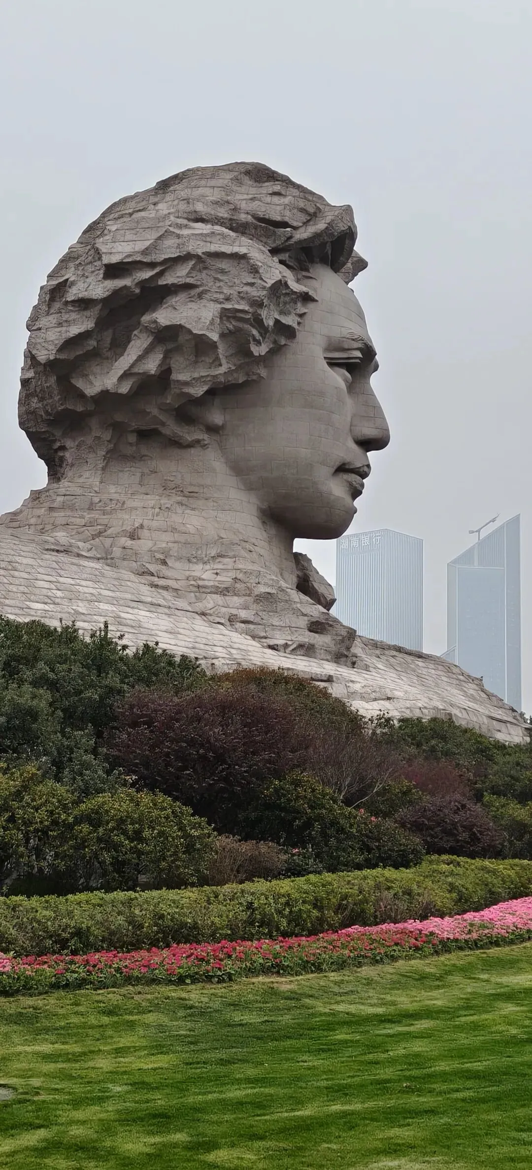 站在橘子洲头,想起伟人的名句:湘江北上,在众多的大江大河中,大都是从东向西从北向南,湘江如此卓尔不群。而伟人的塑像面南背北,双目炯炯凝视着滚滚而来汹涌波浪,更注目遥不可及的中国命运。