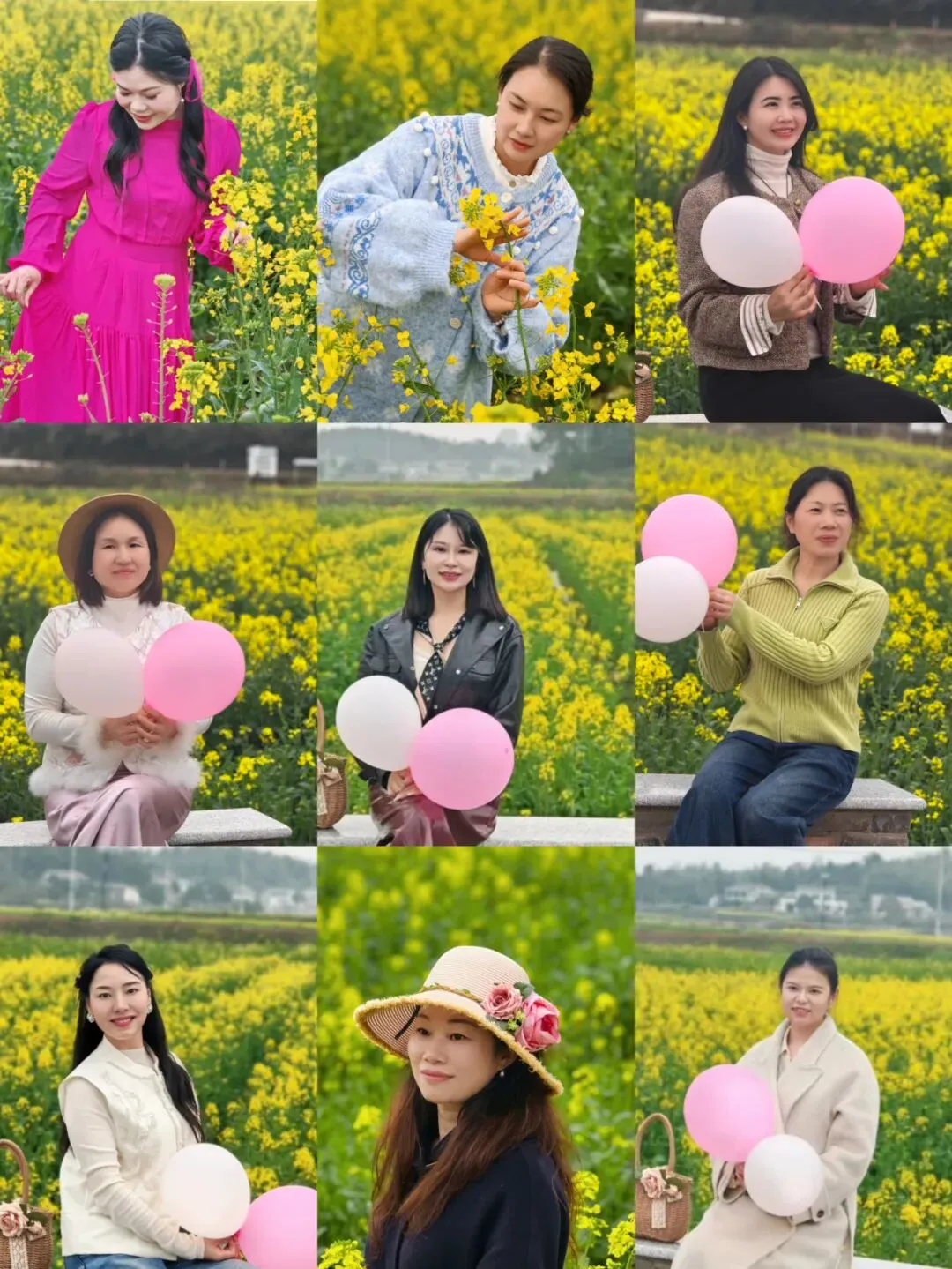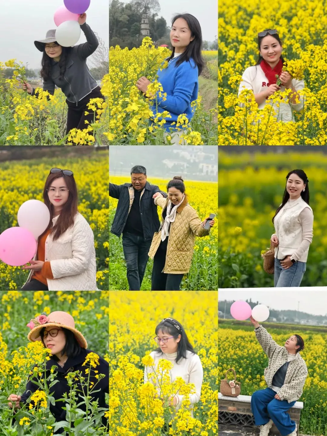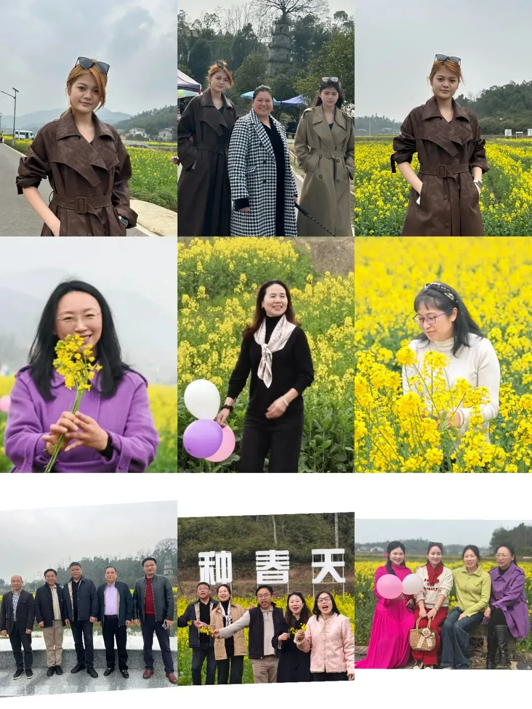 随着一声“出发”,踏青队伍正式步入茶亭花海的怀抱。放眼望去,万亩金灿灿的油菜花田竞相绽放,宛如一片金色的海洋,微风拂过,花浪翻滚,送来阵阵沁人心脾的清香。大家徜徉在这无边的春色里,或驻足赏景,或互相拍照,或三五成群地叙谈乡情与近况。娇艳的花朵映衬着女神们灿烂的笑脸,平日里忙碌于工作与生活的她们,此刻彻底放松了心情,尽情享受着大自然的馈赠和这份难得的惬意时光。欢声笑语在花田间此起彼伏,构成了一幅动人的春日画卷。