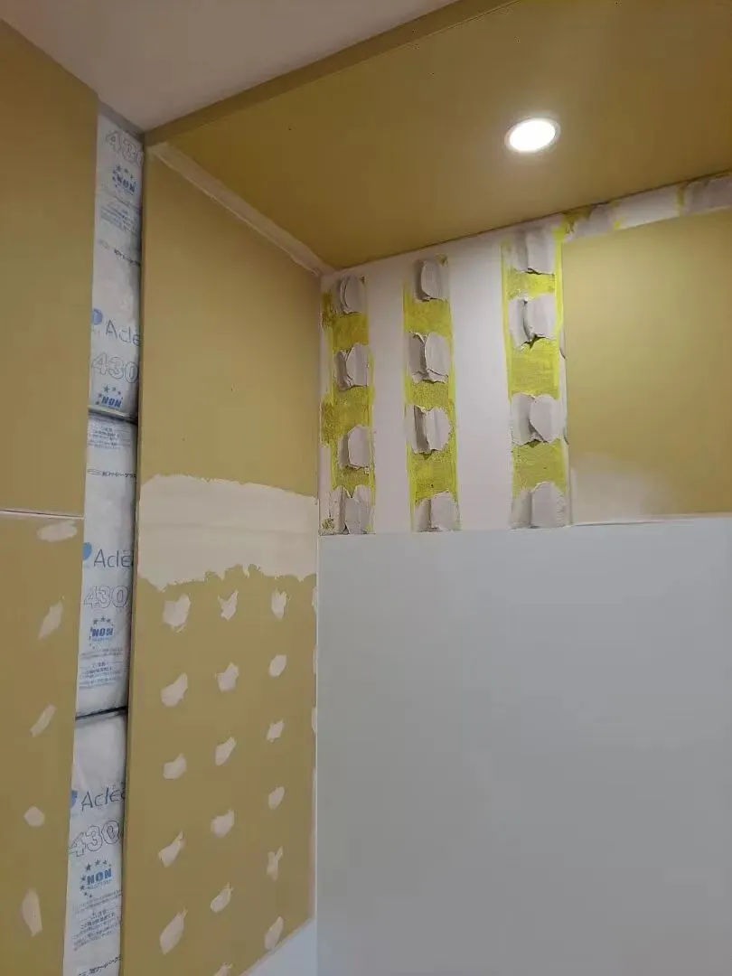 GL 工法(Gypsum Lining,石膏板直贴工法) 是用专用石膏粘合剂,将石膏板直接粘贴在混凝土 / 加气块等毛坯墙面上的日式高效墙面施工工艺,核心是快找平、薄厚度、多性能,标准化施工。