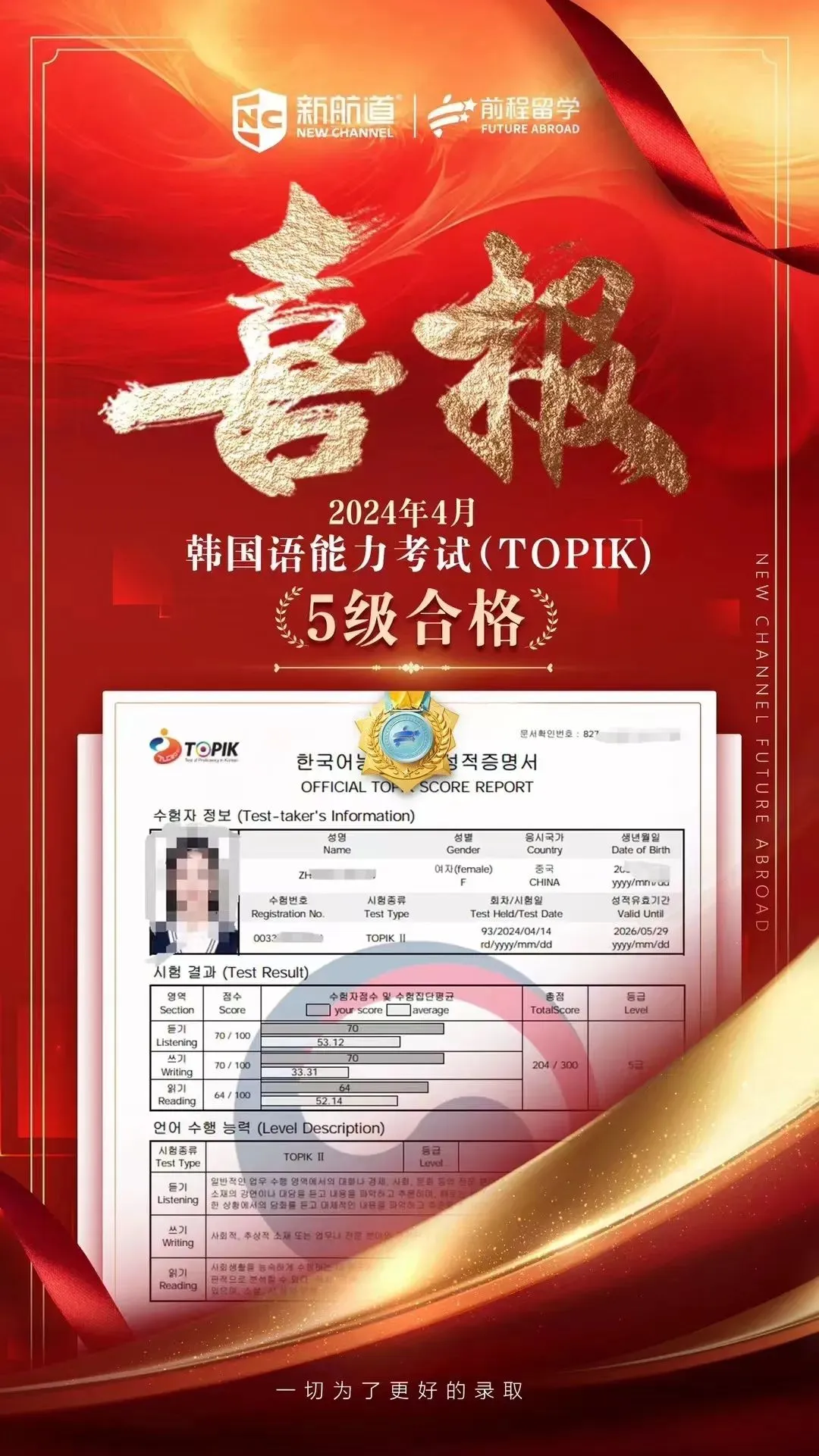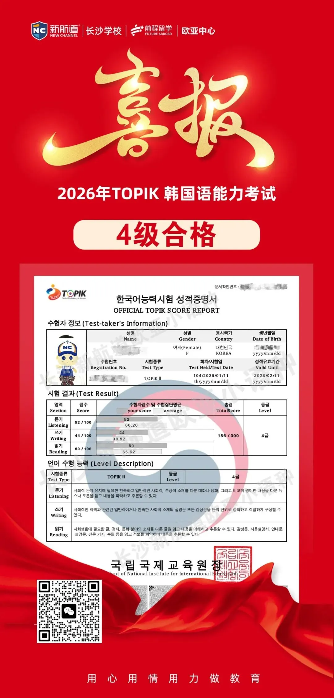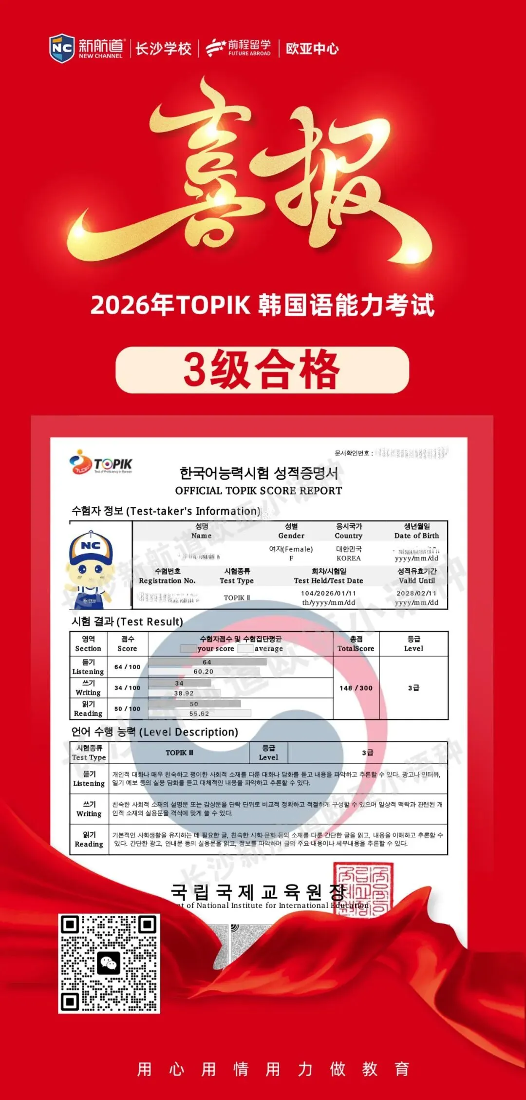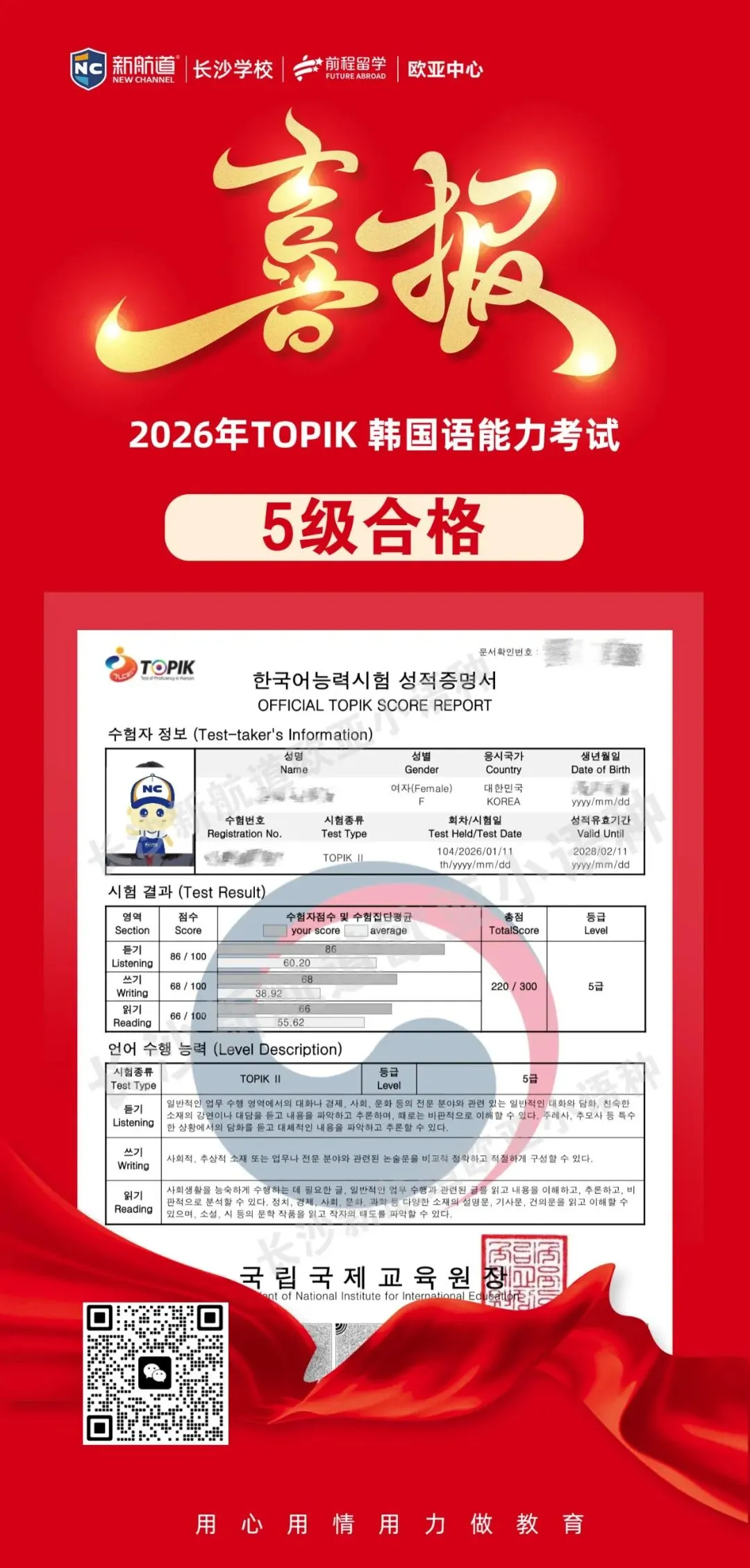 恭喜!长沙新航道多名学员通过104届韩语topik考试