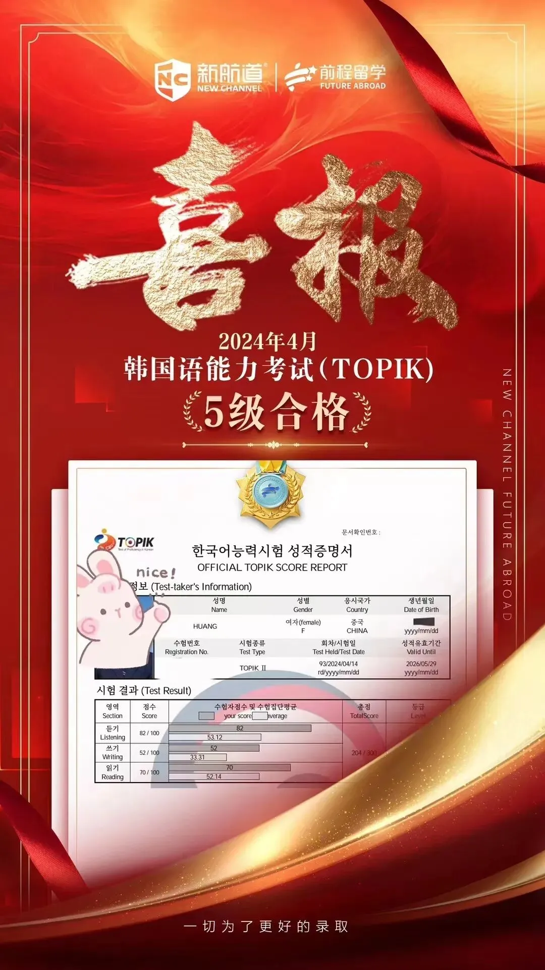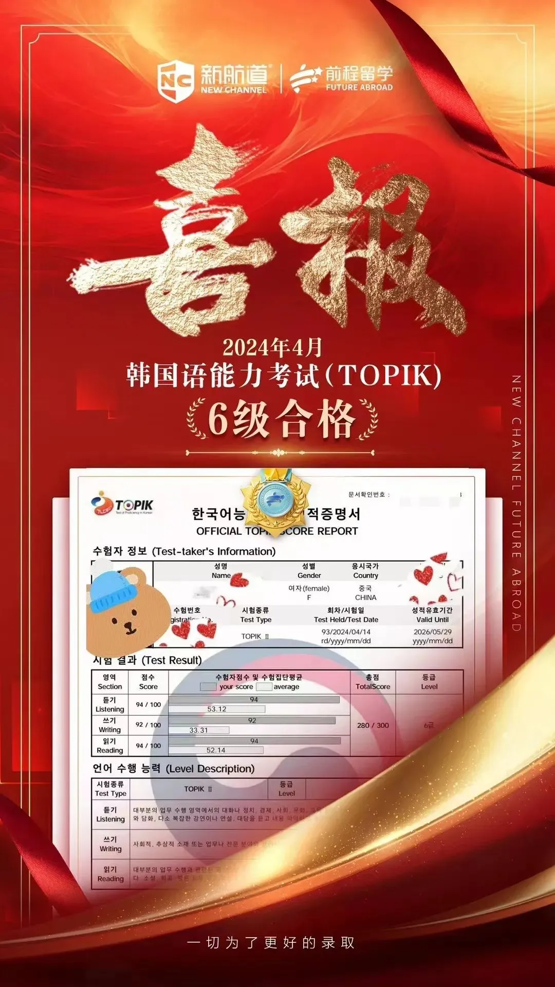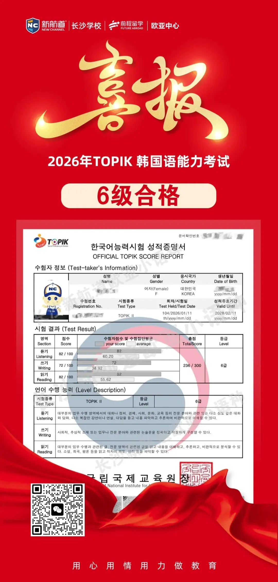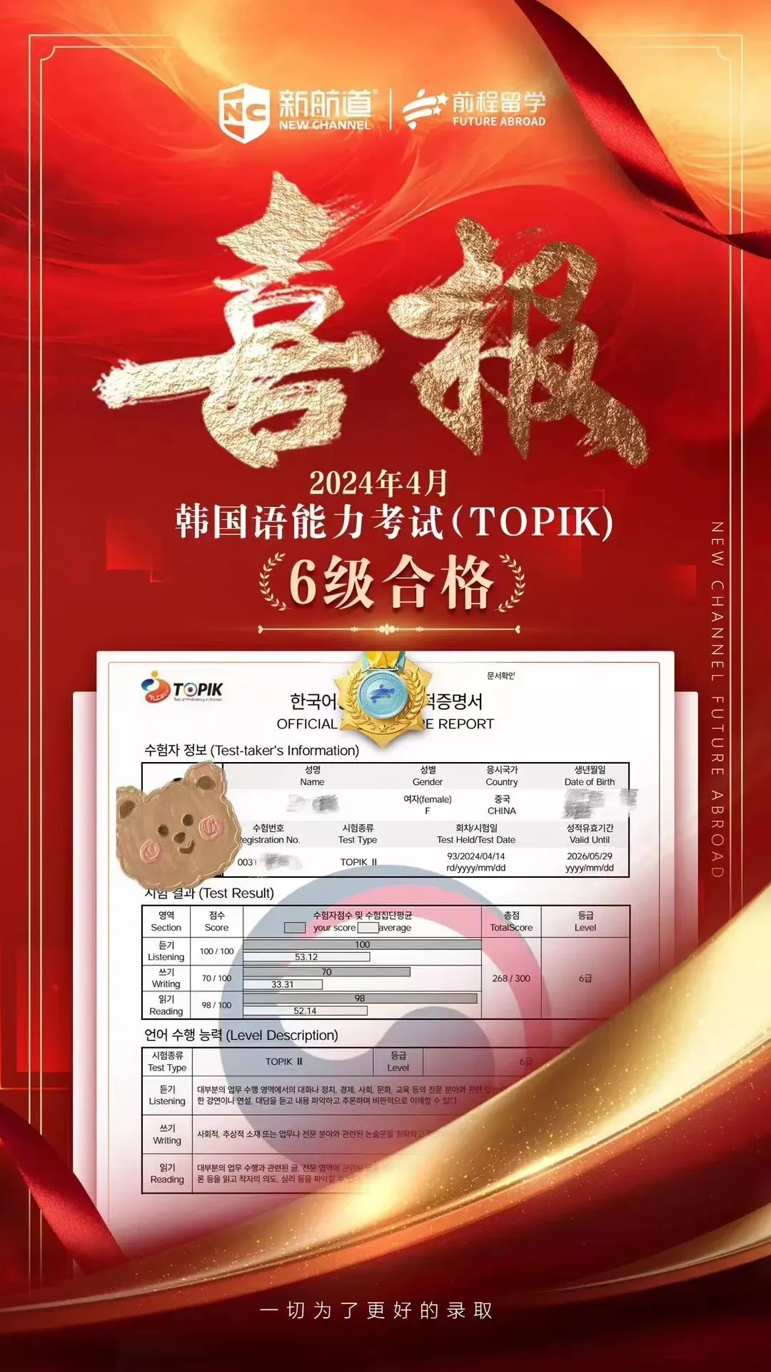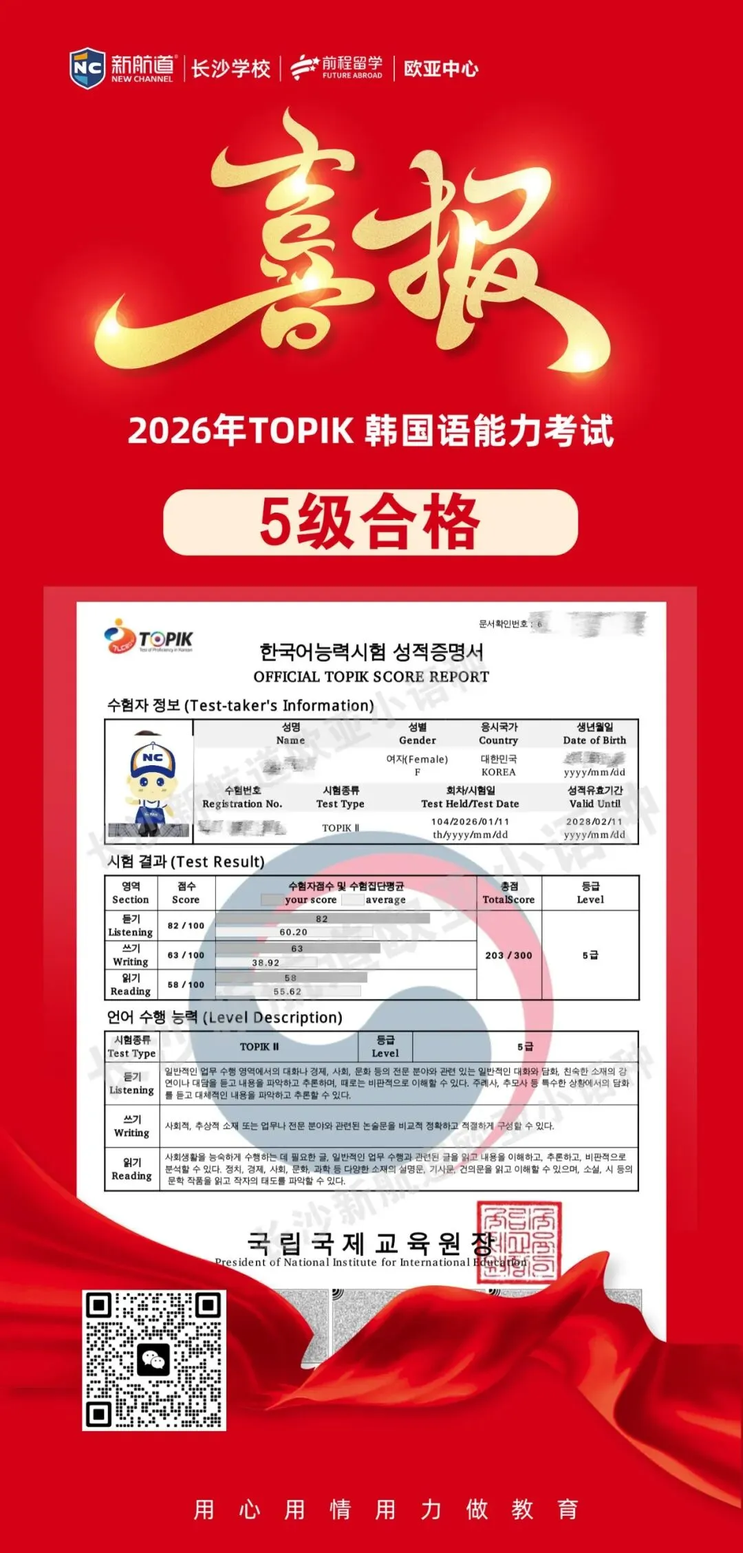 恭喜!长沙新航道多名学员通过104届韩语topik考试