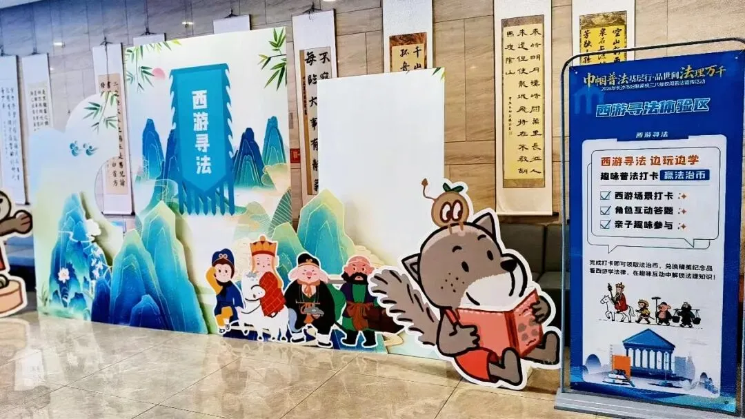 本次活动精心设置了法治阅读区、“西游寻法”体验区、互动游园区、维权服务咨询区、法治币兑换区五大板块。我所律师重点负责“西游寻法”体验区的引导与讲解工作。该区域以经典西游IP为载体,巧妙设计亲子法律知识答题环节,让孩子们在熟悉的角色陪伴下,开启一场别开生面的“法治取经路”。